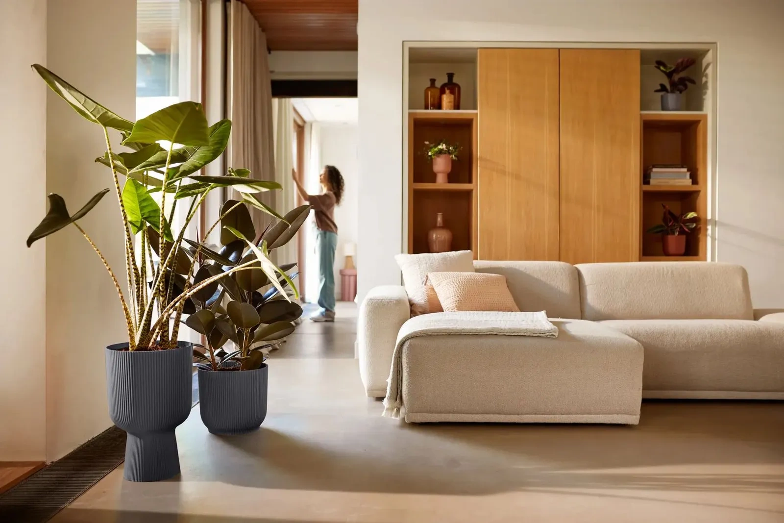 Nowa rodzina doniczek do wnętrz Vibes Fold Couple doskonale wpisuje się w klimat przytulnego, harmonijnego, modnego i przyjaznego wnętrza. Antracytowe osłonki wysokie karbowane podkreślą piękno Twoich roślin domowych dzięki lekko zaokrąglonemu korpusowi, delikatnym tonom i dekoracyjnemu wzorowi.
