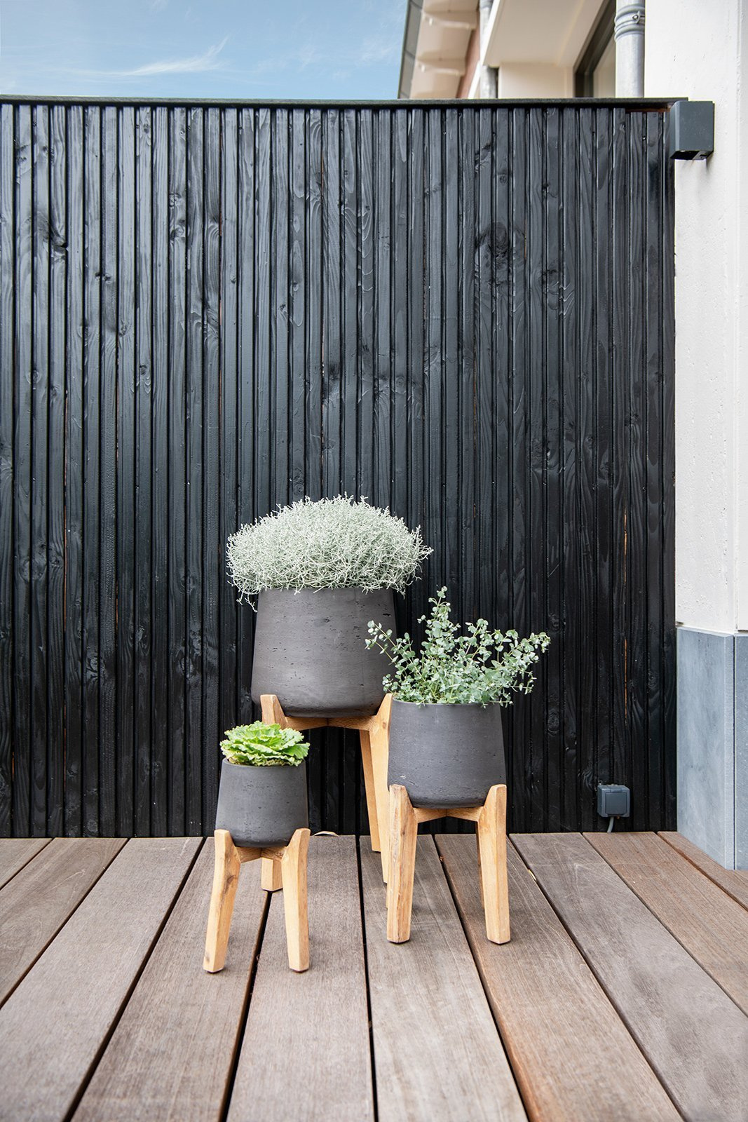Patt XXL 42/43 czarna donica na niskim drewnianym stojaku