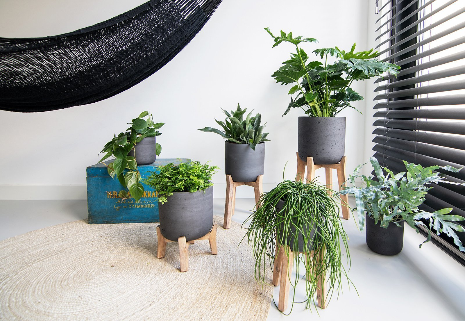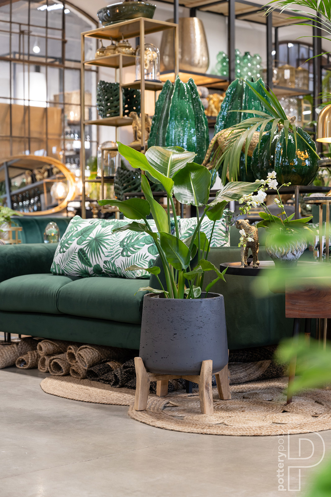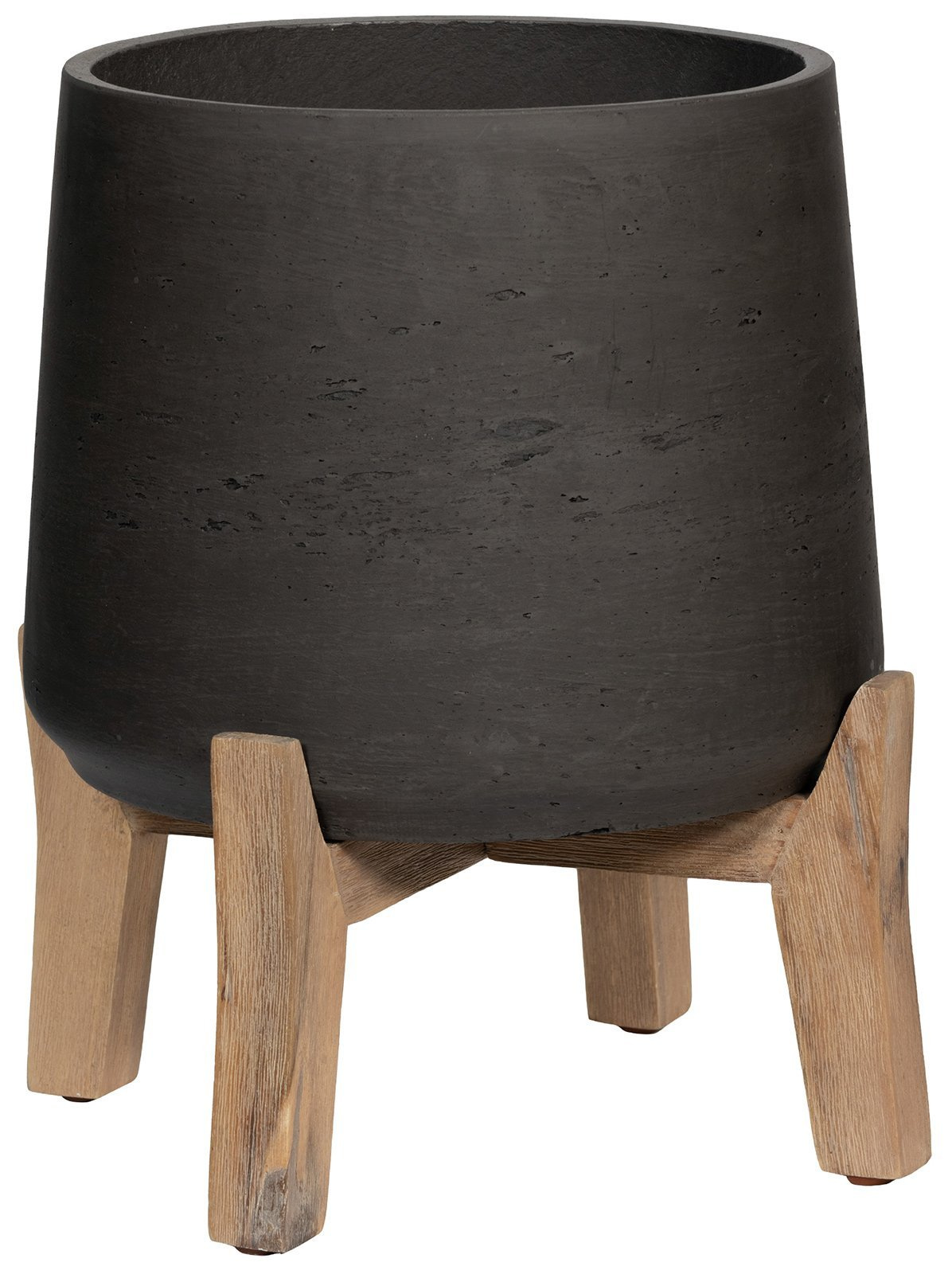 Kamienna donica na niskich drewnianych nóżkach Patt XXL 42/43 czarny sprany