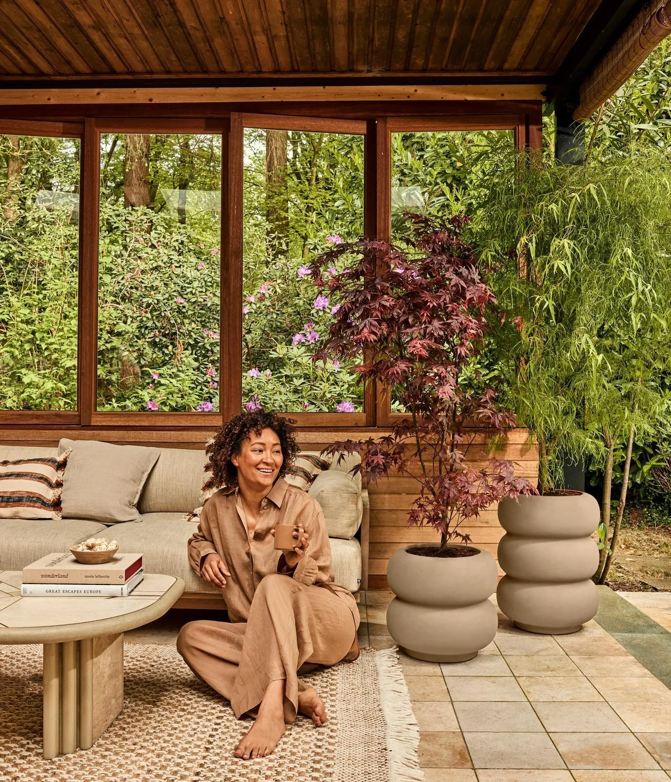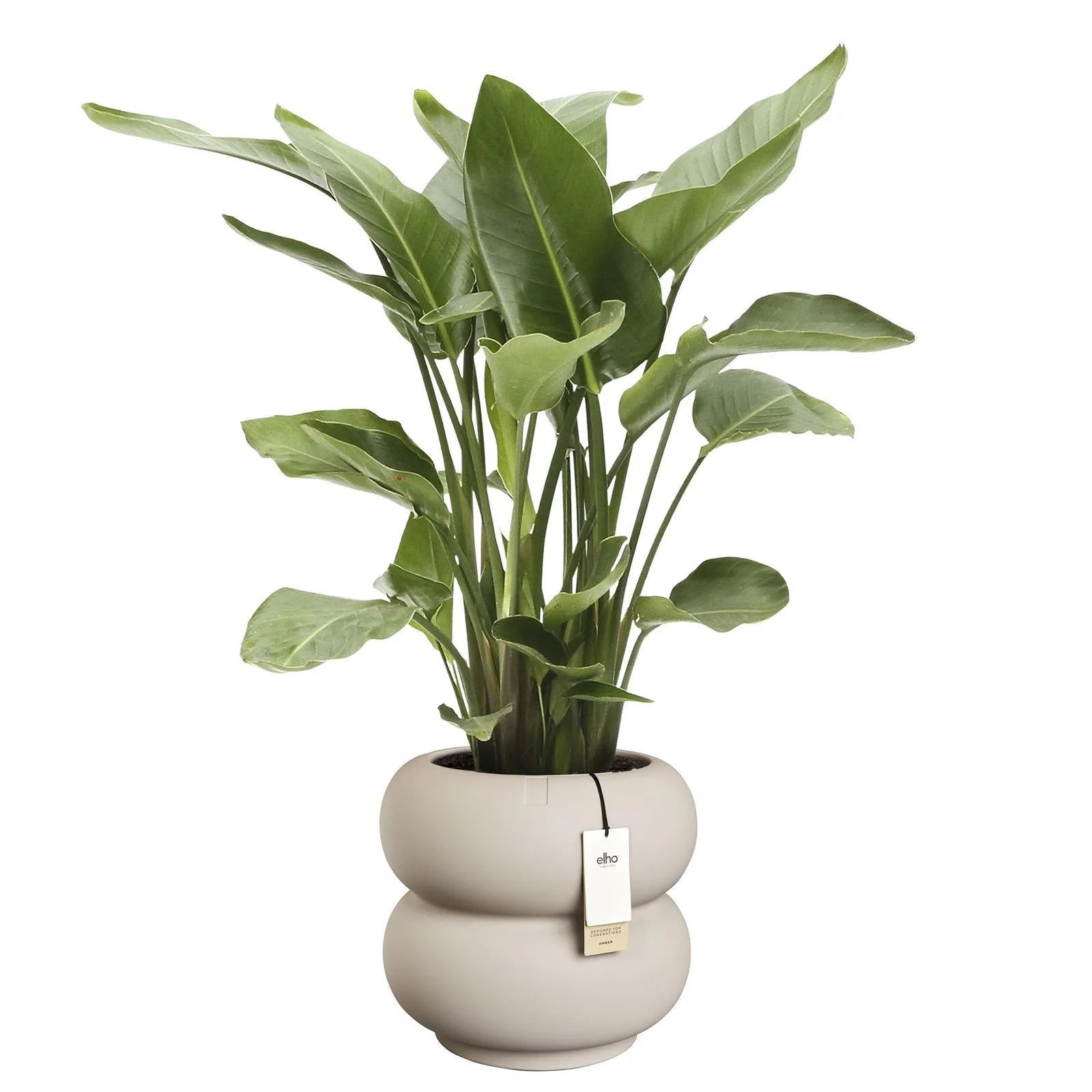 Beżowe designerskie donice do salonu Amber Roll Low 43/40 z serii Elho Premium są uniwersalne i mogą pasować do różnych stylów aranżacji, zarówno wewnątrz, jak i na zewnątrz. Duże rośliny w takich donicach mogą stanowić atrakcyjny dla oka element dekoracyjny.