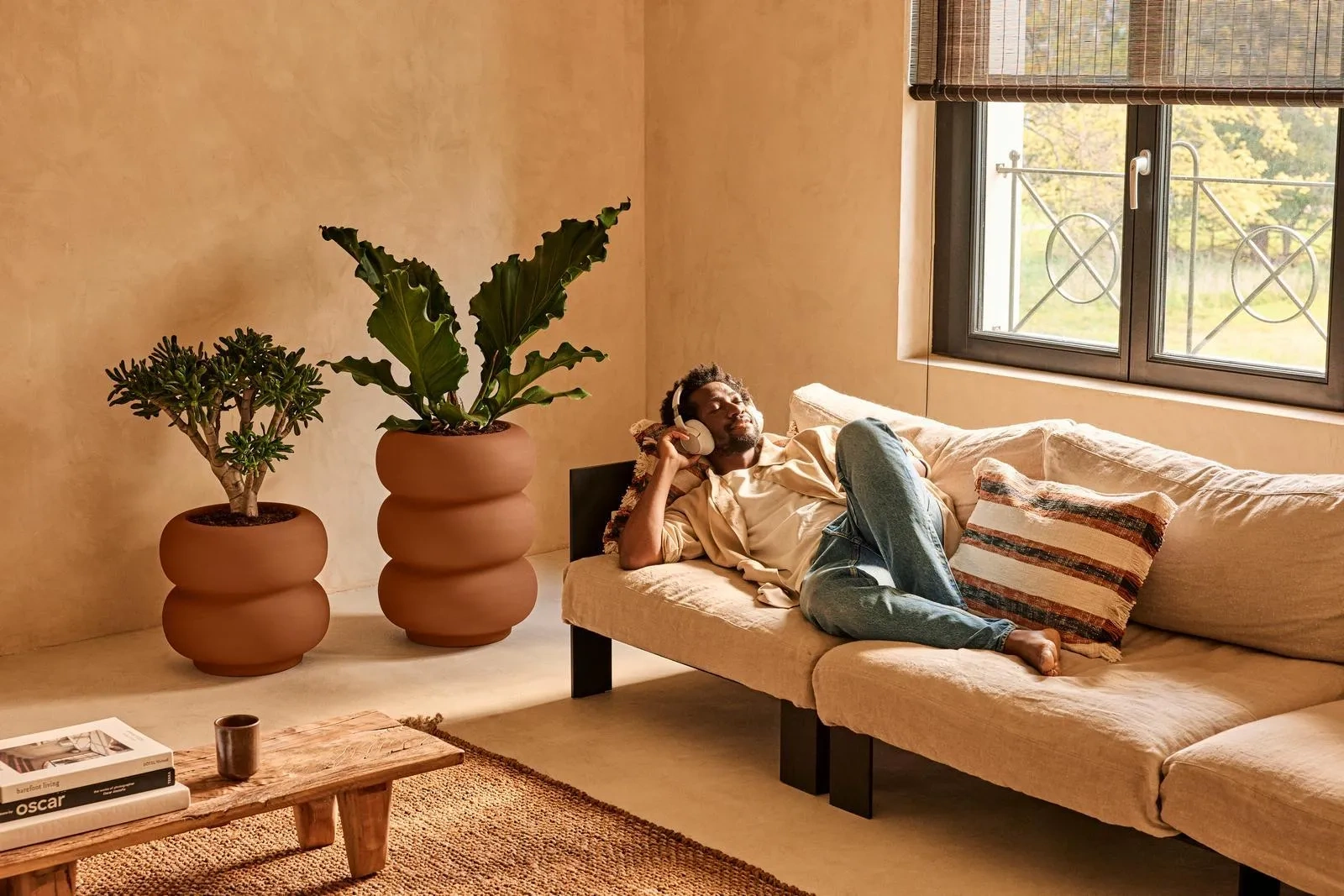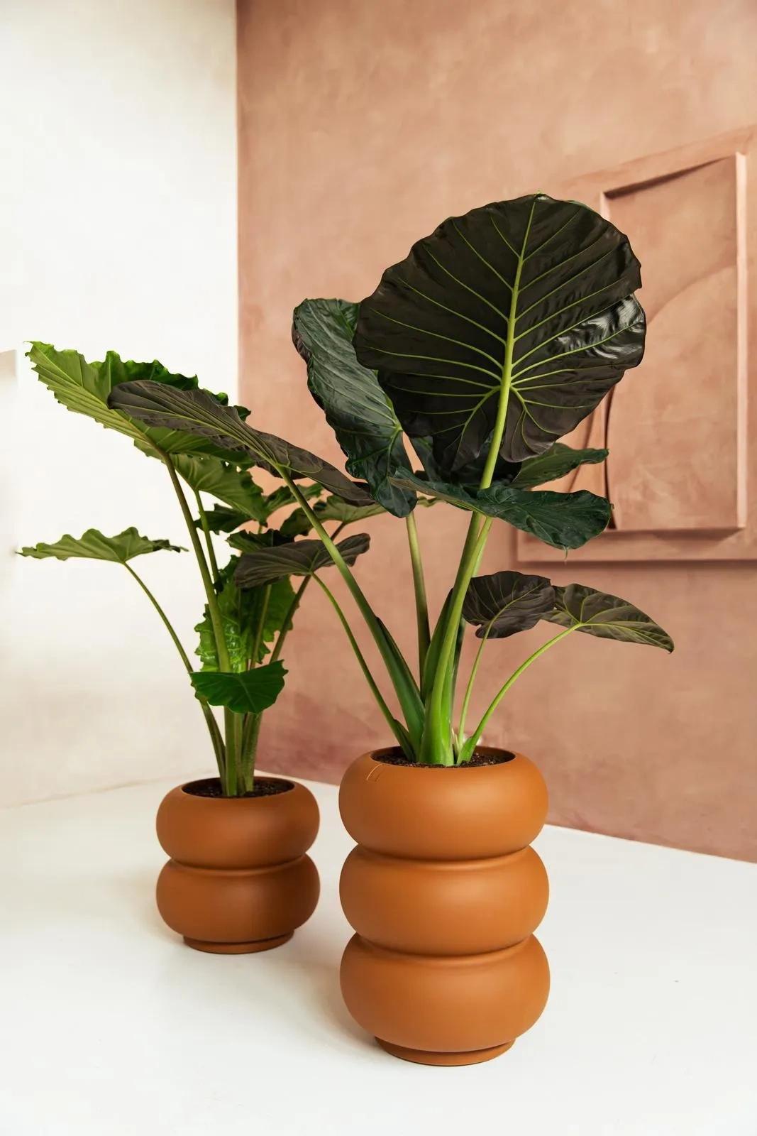 Karmelowe designerskie donice do salonu Amber Roll Low 43/40 z serii Elho Premium są uniwersalne i mogą pasować do różnych stylów aranżacji, zarówno wewnątrz, jak i na zewnątrz. Duże rośliny w takich donicach mogą stanowić atrakcyjny dla oka element dekoracyjny.