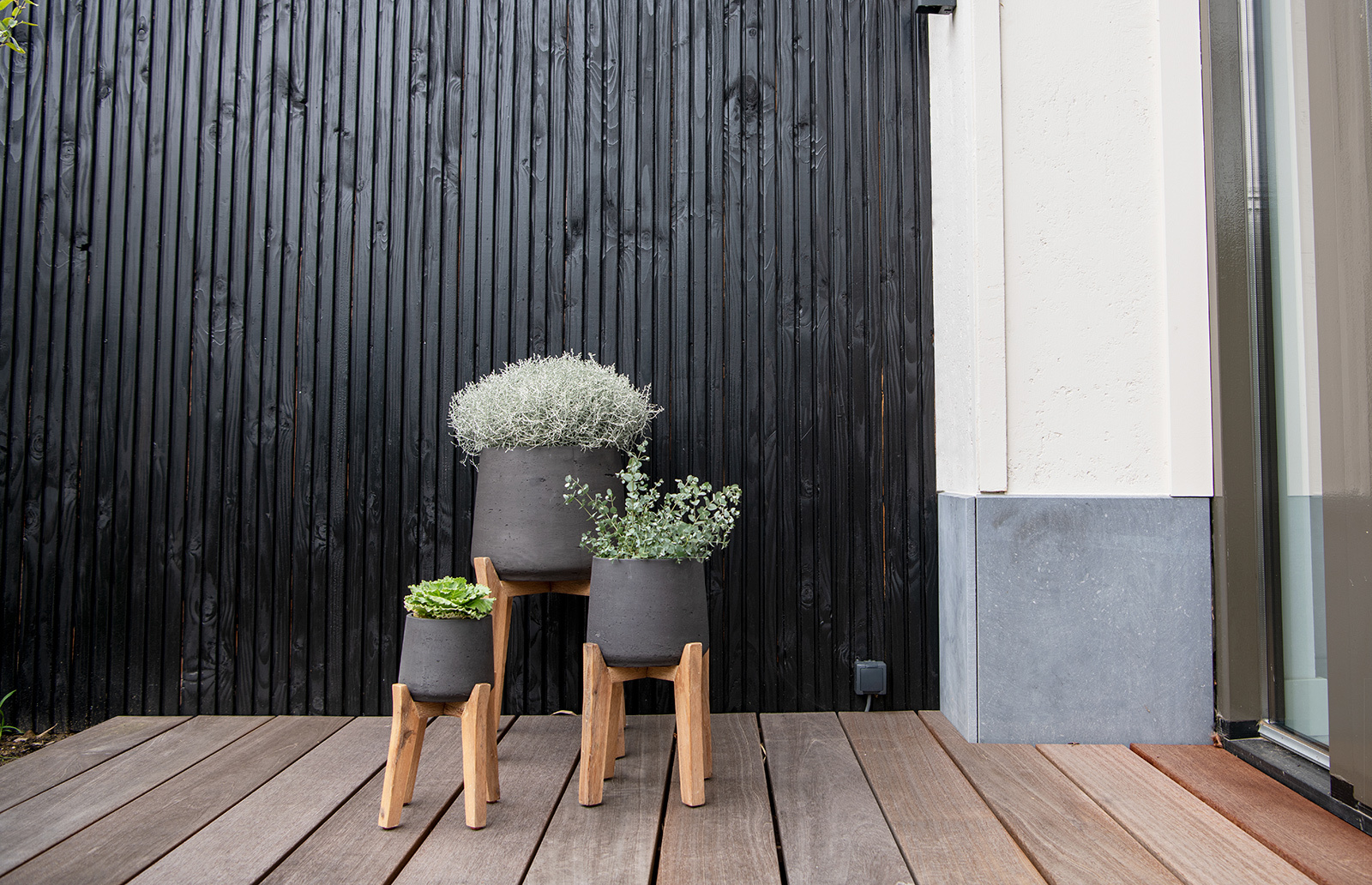 Naturalna osłonka na drewnianych nóżkach Charlie M wykonana jest ze zmielonego kamienia, piasku i cementu wzmocnionego włóknem szklanym. Dzięki temu jest odporna na warunki atmosferyczne (mrozoodporna) i można ją stosować we wnętrzach jak i na zewnątrz. Nóżki są wykonane z naturalnego drewna. Osłonka wyróżnia się nie tylko naturalnym wyglądem ale również cylindrycznym kształtem i świetnie sprawdzi się w otoczeniu zarówno nowoczesnym jak i klasycznym. W doniczce pięknie prezentują się rośliny żywe jak i kwiaty sztuczne.