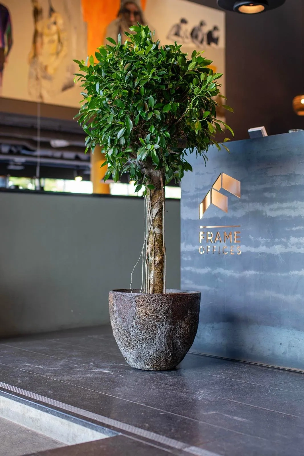 Duża brązowa donica naturalna Jesslyn 80x70 cm odporna jest na warunki atmosferyczne i można ją stosować we wnętrzach jak i na zewnątrz. Osłonka wyróżnia się niespotykanym, oryginalnym i naturalnym wyglądem i świetnie sprawdzi się w otoczeniu zarówno klasycznym jak i nowoczesnym. W donicy pięknie prezentują się rośliny żywe jak i sztuczne kwiaty.