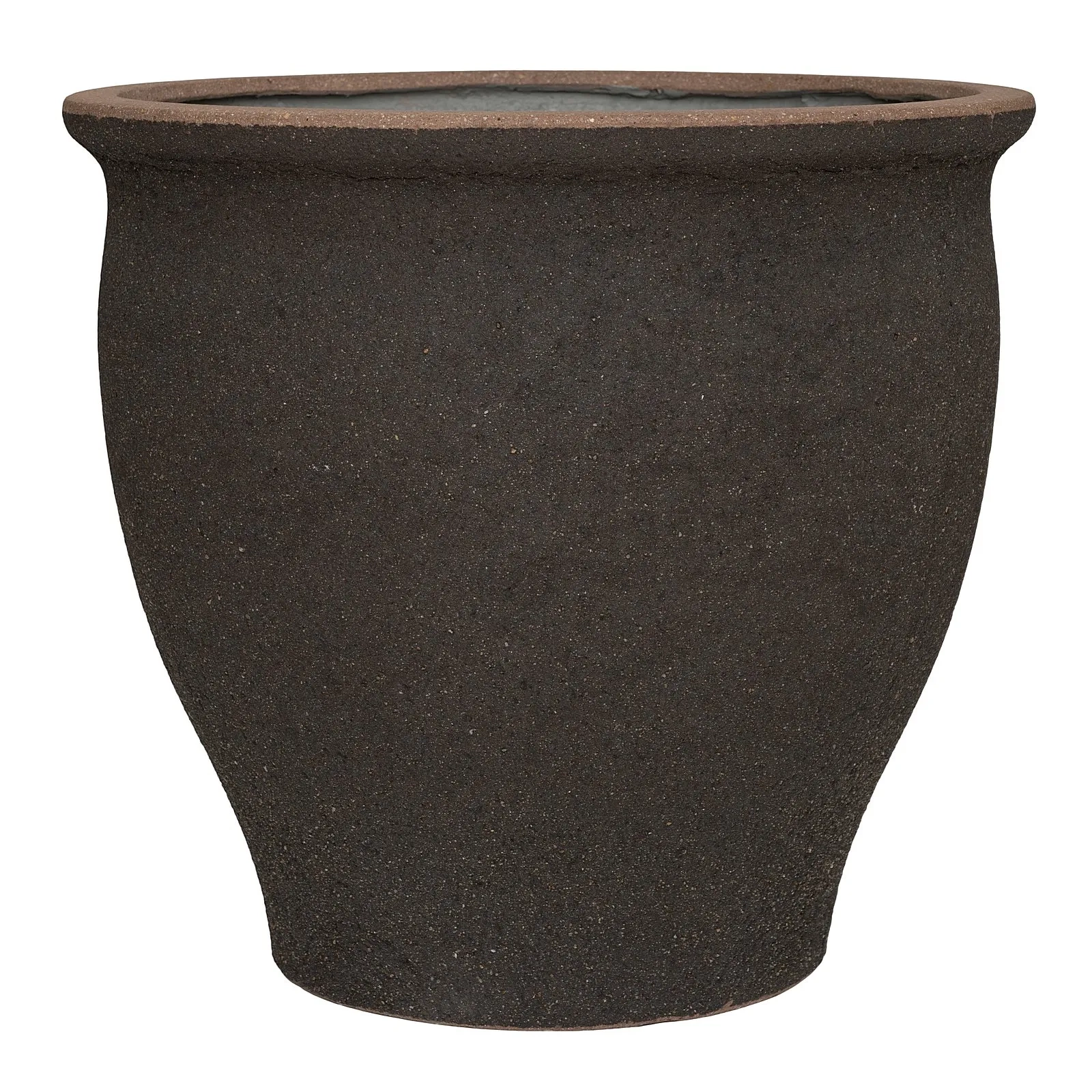 Duża donica grecka Poseidon L 63/58 umber brown wykonana jest z zmielonego kamienia, piasku, cementu i wzmocnione włóknem szklanym.
