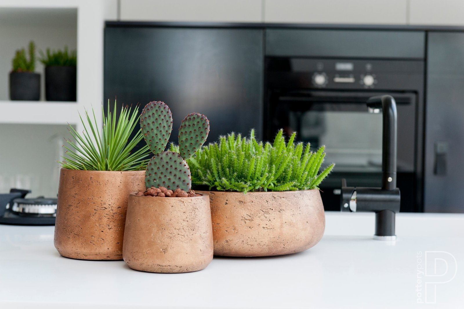 Doniczki betonowe są przepiękne... masywne, dobrze wykonane. Niestety, jeżeli chodzi o kolor jest niezgodny z opisem, ale o tym już wcześniej wiedziałam ponieważ kupiłam je po raz drugi. Czarny kolor tak naprawdę wypada jak antracyt, ale z tym sobie poradziłam... kupiłam czarny matowy spray i je pomalowałam... wyszły pięknie. Mimo niezgodności koloru bardzo polecam tą serię doniczek!