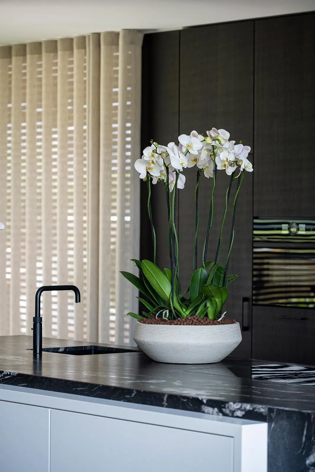 Misa Madu wyróżnia się niskim, szerokim kształtem, który idealnie nadaje się do tworzenia ciekawych kompozycji roślinnych. Jej unikalny odcień clay washed to ciepły, matowy brązowo-pomarańczowy, przypominający naturalną, wypalaną glinę. Powierzchnia donicy jest gładka, z delikatnymi, porowatymi wtrąceniami, które dodają jej autentyczności i charakteru.