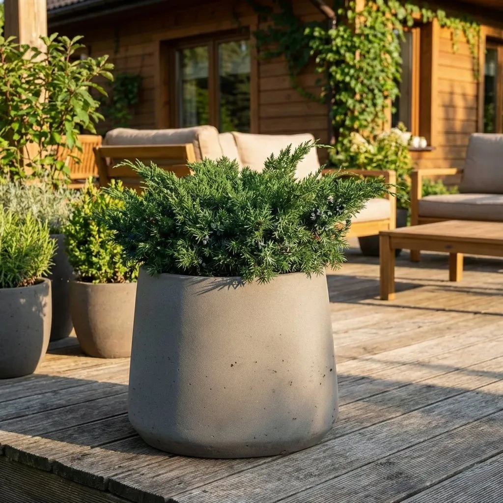 - aranżacje w holach i lobby: dzięki swojej masie i estetyce, donica doskonale prezentuje się w przestrzeniach publicznych, hotelach czy biurach typu open space, wprowadzając element natury w surowym wydaniu.