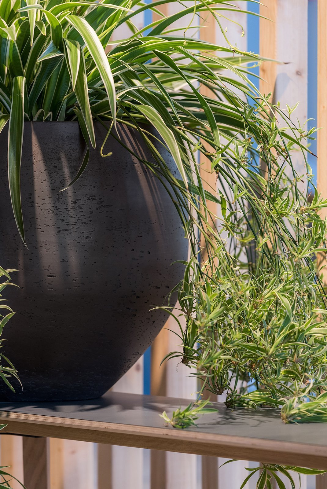 Gdy stosujesz duże donice Mini Orb na zewnątrz jako donice do ogrodu i na taras możesz wywiercić otwór w dnie aby nadmiar wody (w przypadku deszczu) mógł odpłynąć.