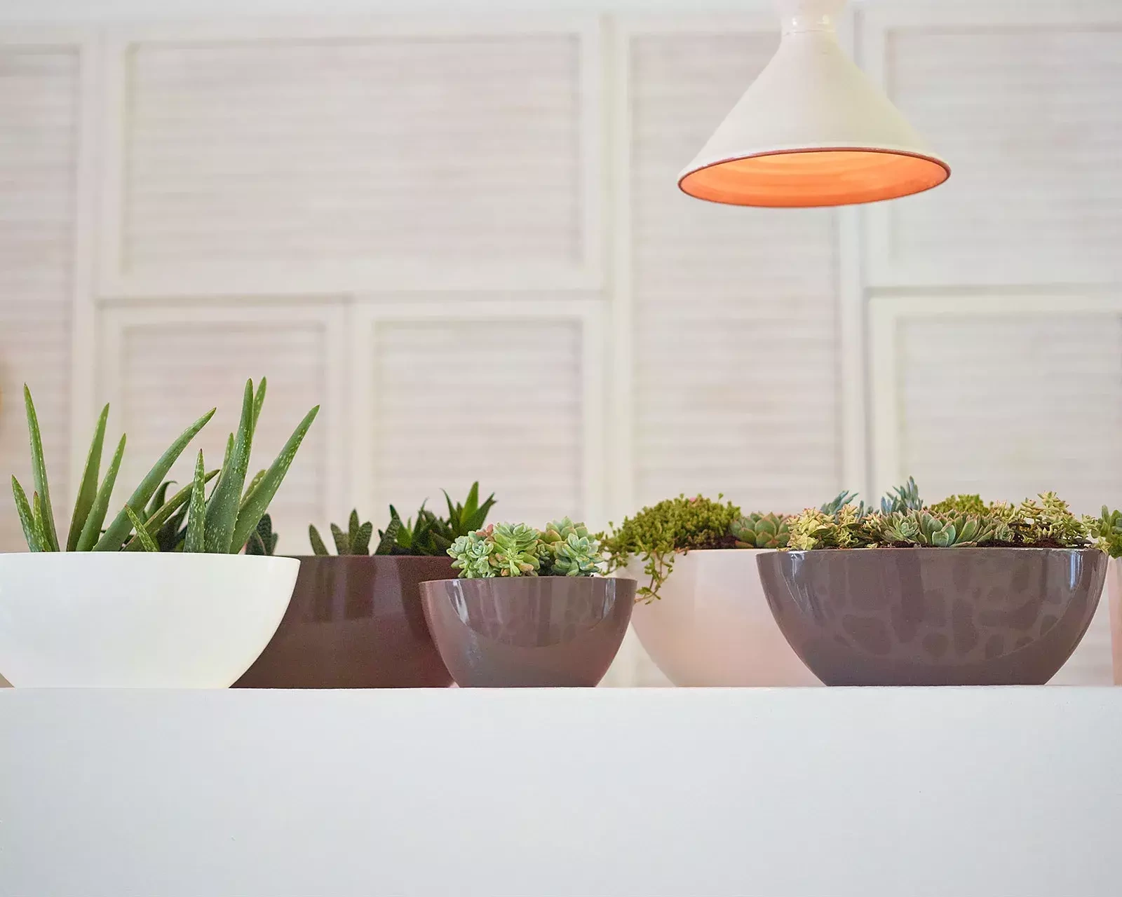 W osłonkach owalnych Bahia 35x17/13 ładnie prezentować się będą kompozycje z kaktusów i sukulentów, storczyki jak i inne rośliny.