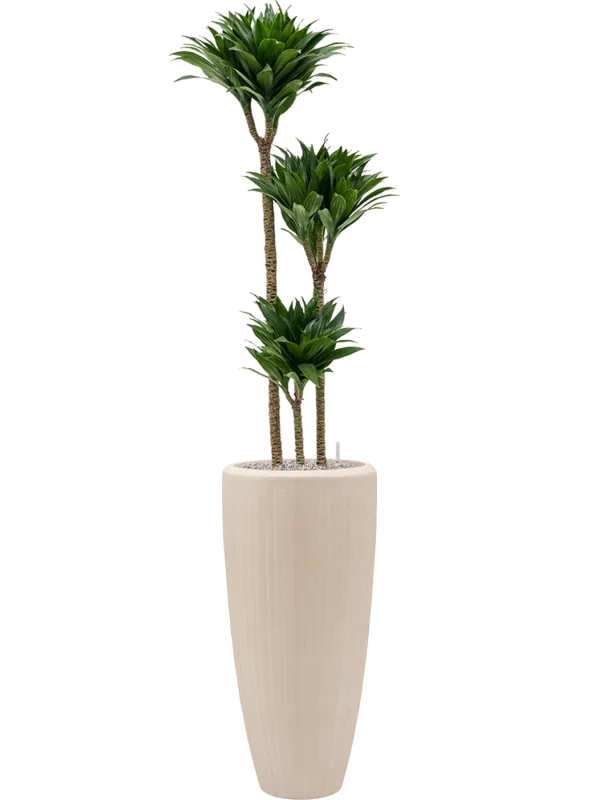 Wysokie donice Polystone uzyskują swój autentyczny wygląd kamienia dzięki polystone, mieszaninie plastiku i mielonego wapienia. Chociaż materiał ten jest zewnętrznie podobny do kamienia naturalnego, jest również zaskakująco lekki.