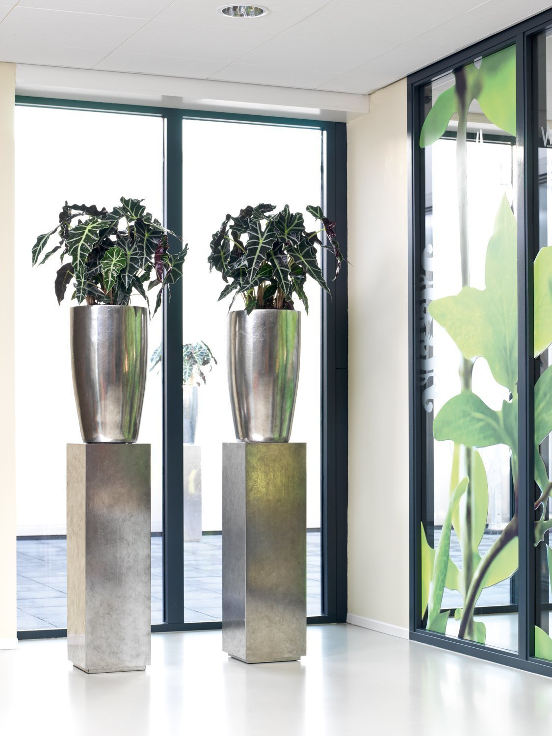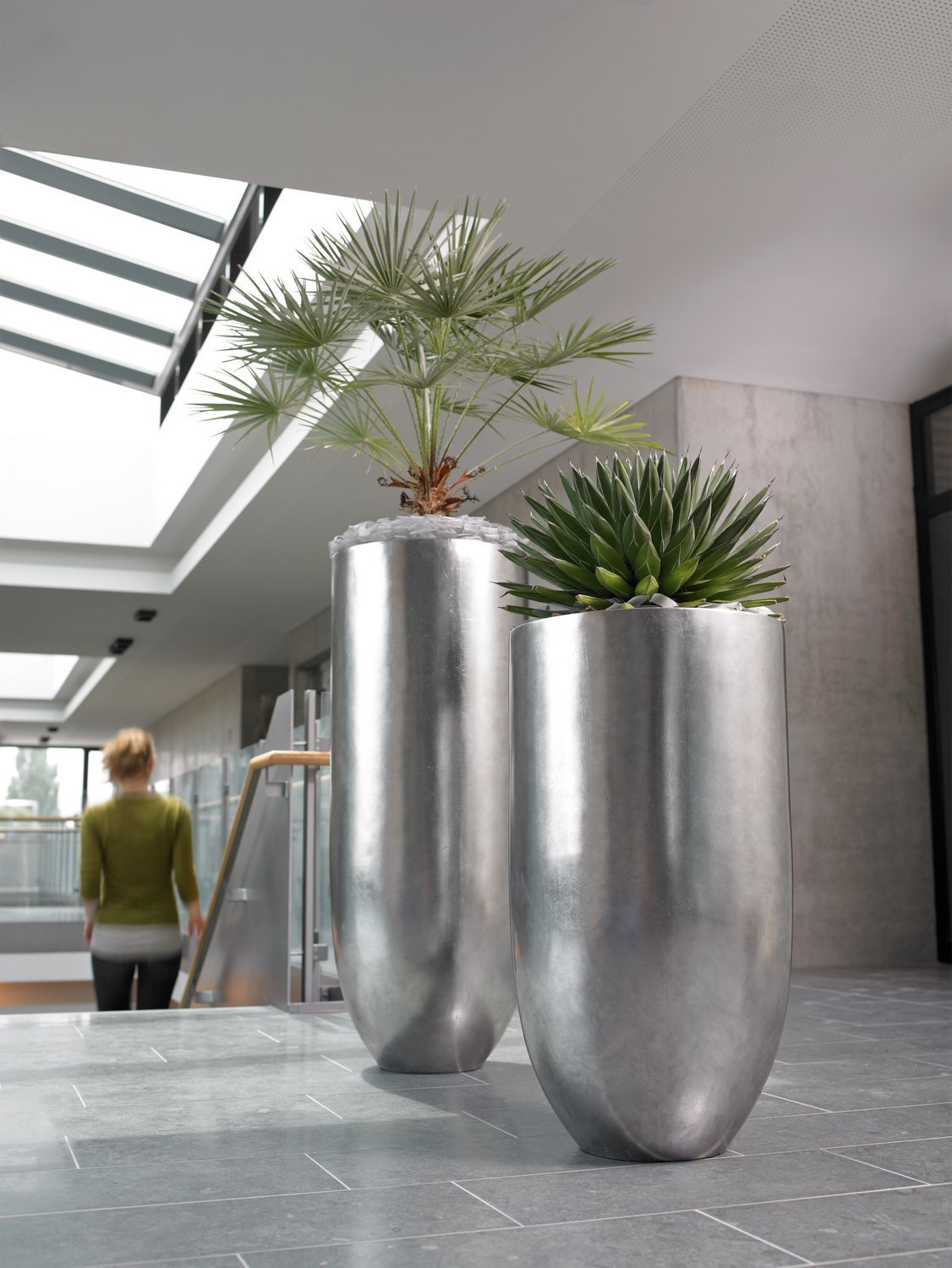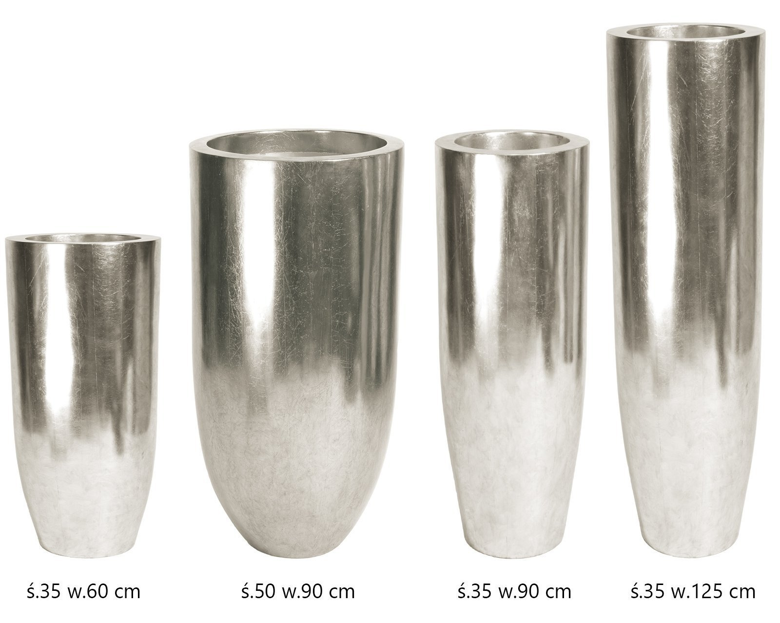Donice wysokie srebrne Pandora można stosować we wnętrzach.