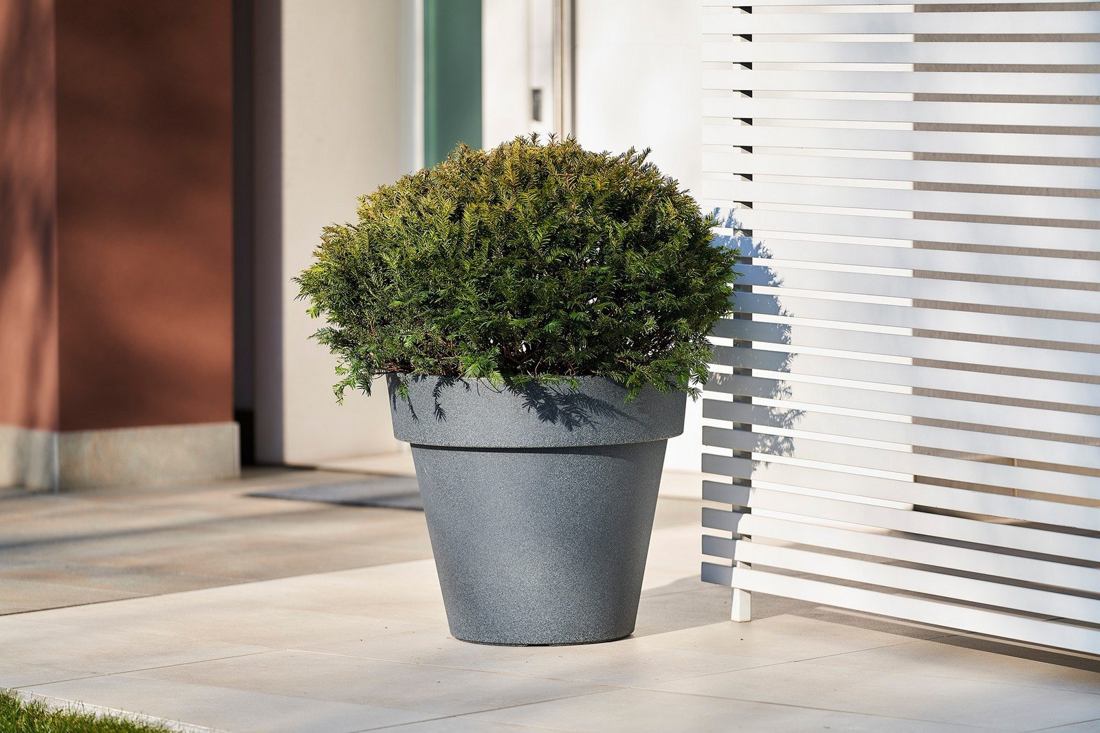 Okrągła doniczka  kolorze z rantem IKON produkowana jest z nietoksycznych i przetworzonych żywic co gwarantuje wysoką jakość, odporność na warunki atmosferyczne (od -65oC do 85oC), promieniowanie UV i pęknięcia.