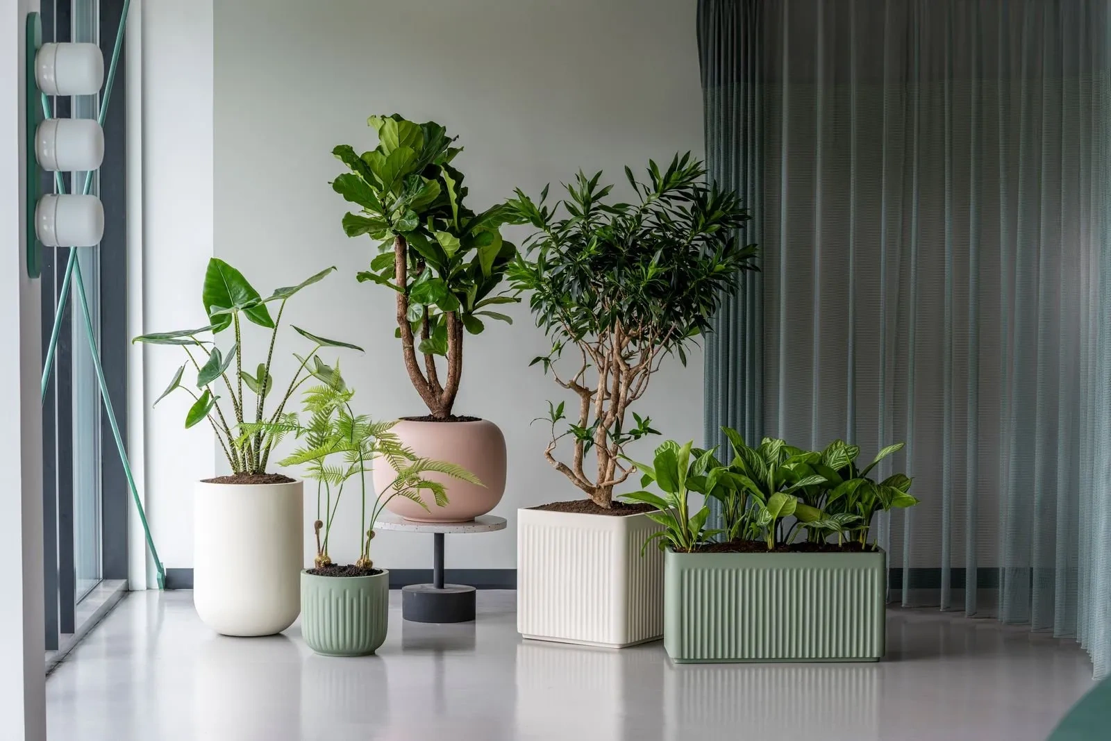 - nowoczesne biuro domowe: świetny sposób na dodanie miękkości i koloru do minimalistycznego biura. Wypełniona niską trawą ozdobną lub Sansewierią o wyższym pokroju, zachowując jednocześnie profesjonalny wygląd.