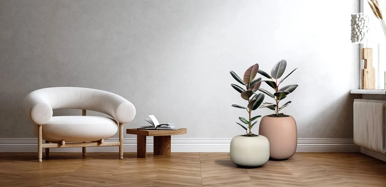 - salon i sypialnia: ustawiona w sypialni obok toaletki lub w salonie przy jasnej sofie. Pastelowy róż pięknie komponuje się z mosiądzem, złotem i szarościami. Idealna do wyeksponowania dużej, delikatnej paproci lub Fikusa Benjamina dla stworzenia przytulnej atmosfery.