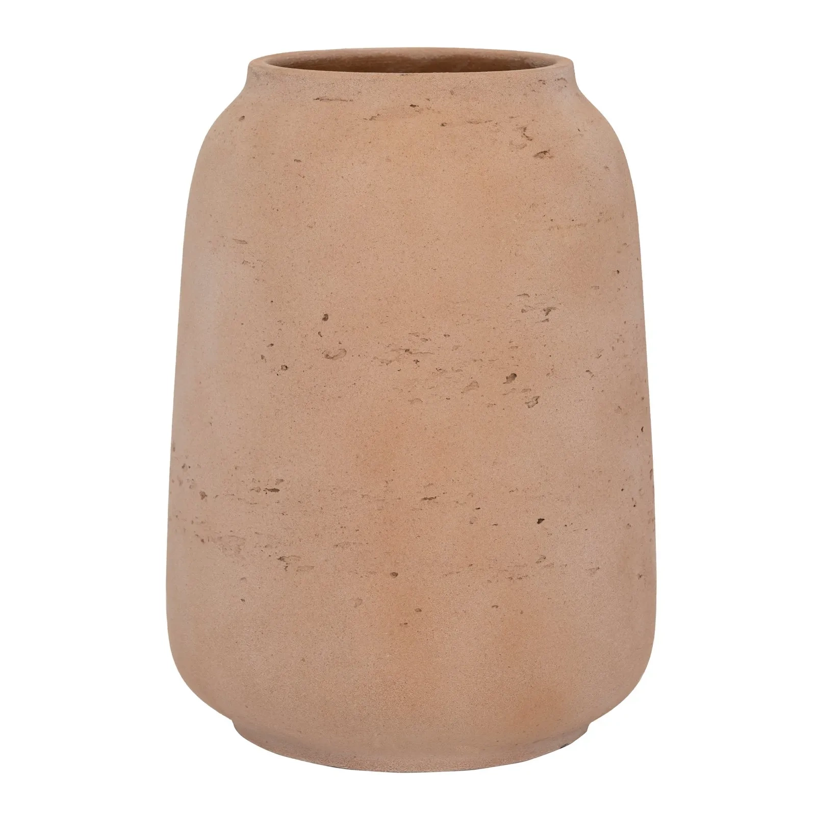 • Design: kształt wazonu jest smukły i elegancki, zwężający się ku górze. Chropowata, porowata faktura oraz nieregularne wybarwienie w kolorze clay washed podkreślają jego rustykalny styl. To celowy efekt, nadający mu wygląd naturalnie "postarzonego" kamienia.