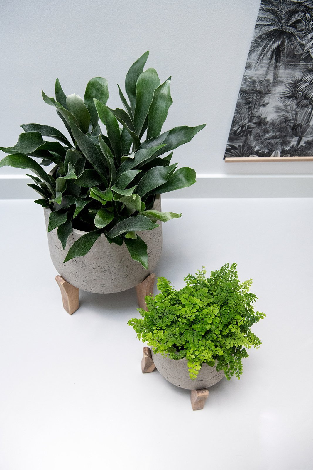 Kamienna szara doniczka na niskich drewnianych nóżkach Patt XL 28/29