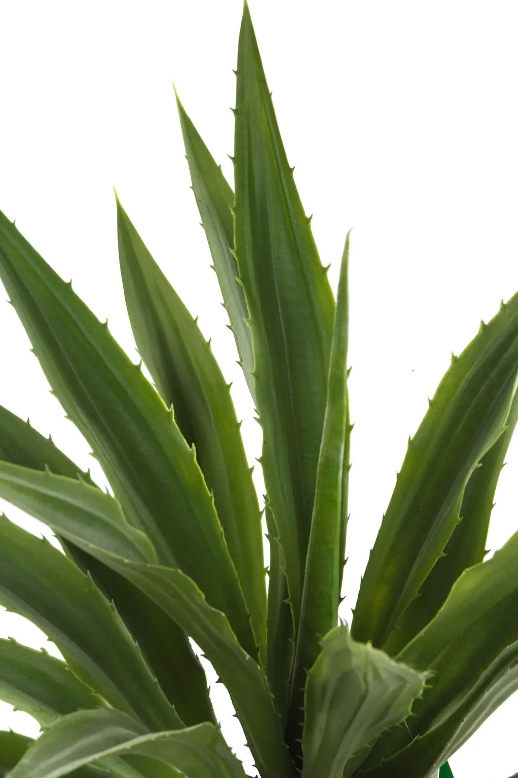 - Realistyczny wygląd: agawa prezentuje się niezwykle autentycznie. Jej długie, mięsiste liście w intensywnym odcieniu zieleni, zakończone charakterystycznymi dla agawy kolcami, wiernie odwzorowują naturalny wygląd rośliny. Detale, takie jak faktura liści i sposób ich ułożenia, sprawiają, że trudno odróżnić ją od prawdziwej agawy.