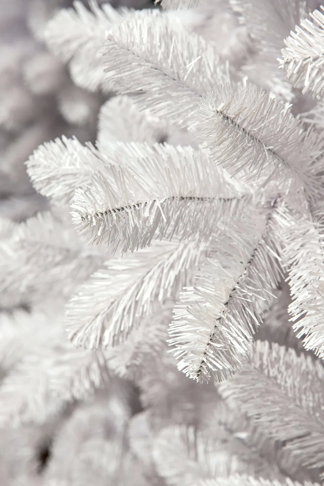 - Kolor: intensywna, czysta biel (całkowicie biała, sztuczna choinka), która doskonale imituje drzewko oszronione lub świeżo oprószone śniegiem.