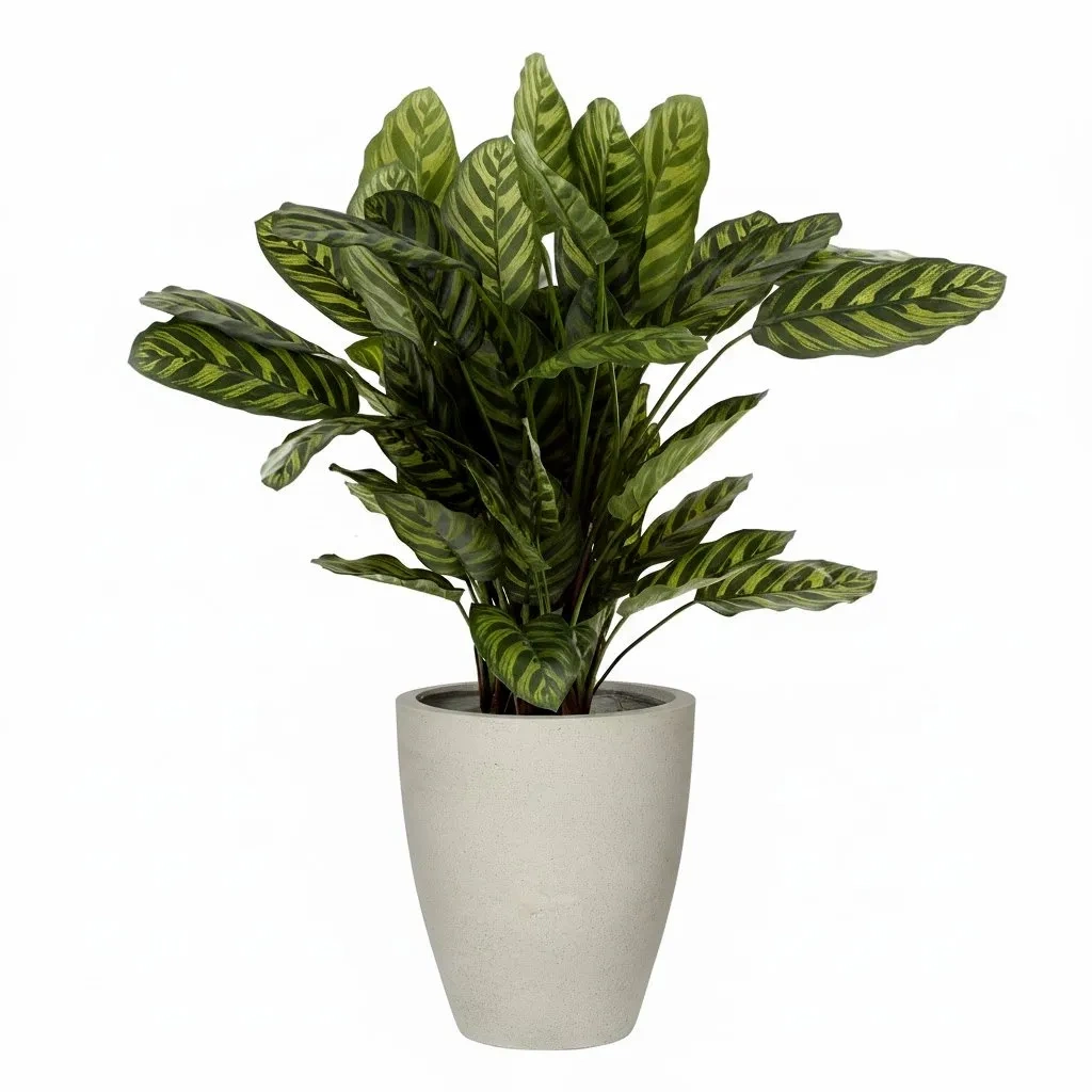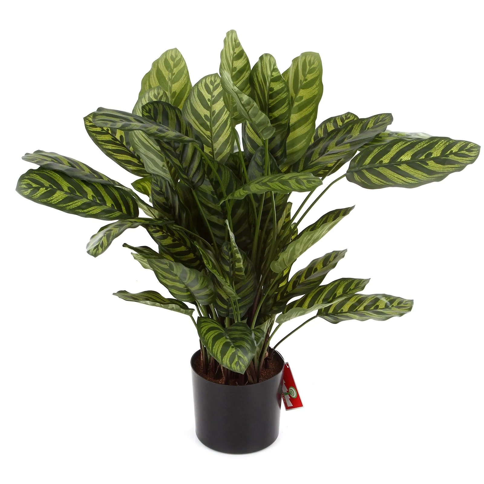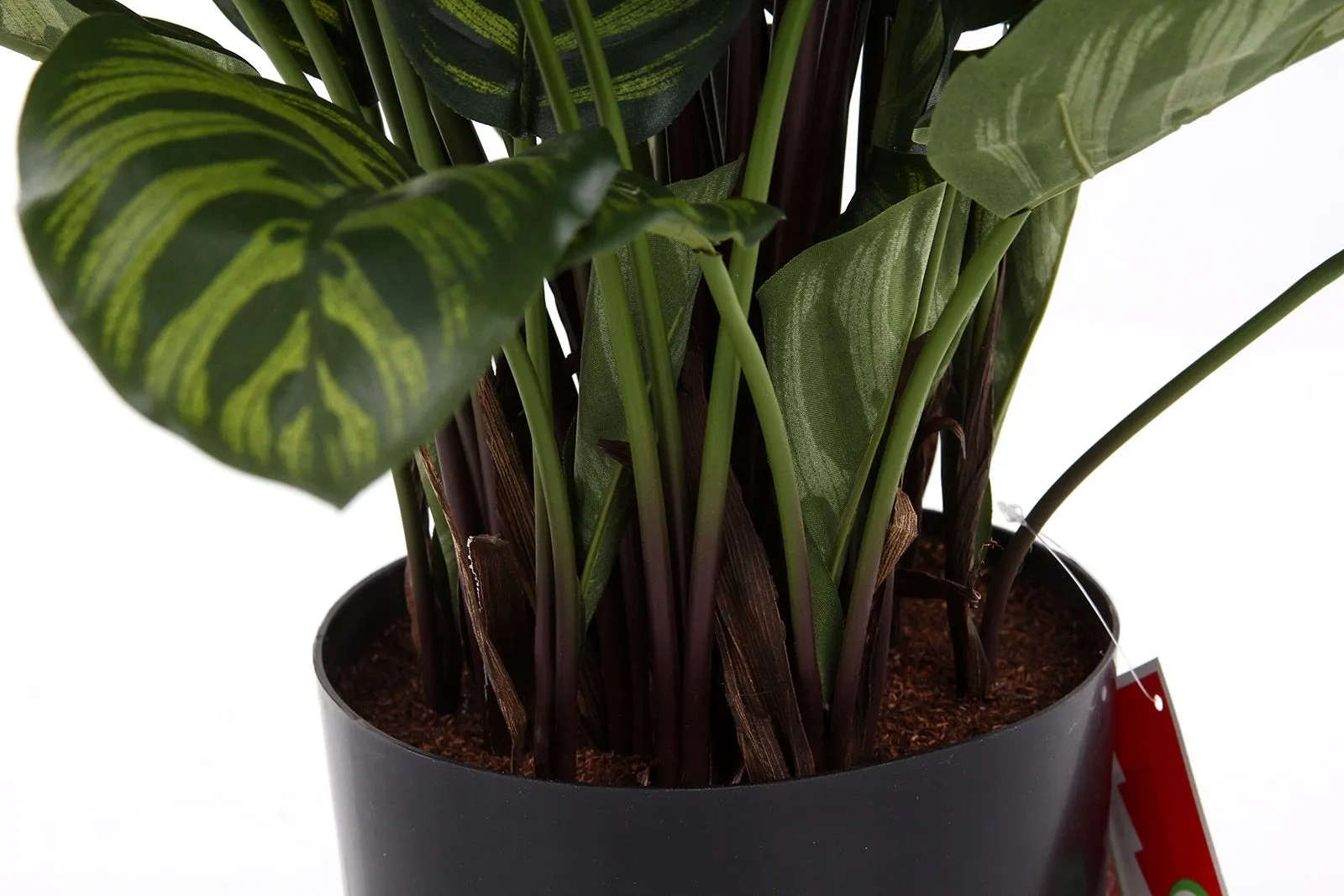 Sztuczna Kalatea 80 cm dzięki swojemu wyrazistemu wzorowi i wysokości, doskonale sprawdzi się w różnorodnych stylach wnętrzarskich, wprowadzając egzotyczny klimat i kolor: