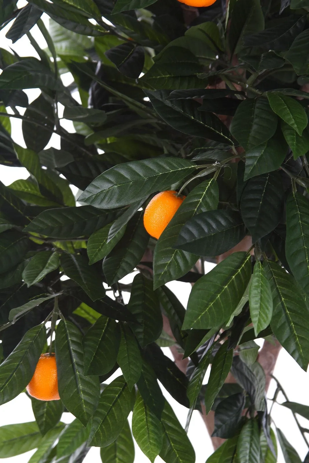 - realistyczne owoce: owoce mandarynki nie są gładkimi kulami z plastiku. Posiadają porowatą, nieregularną fakturę skórki, która wiernie imituje naturalny owoc cytrusowy. Ich nasycony, pomarańczowy kolor stanowi piękny kontrast dla ciemnej zieleni liści.