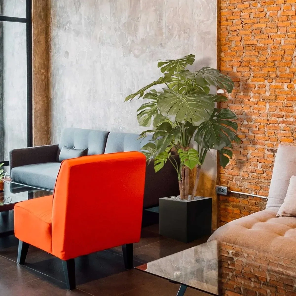 - Salon: umieść Monsterę obok kanapy lub w pustym kącie, aby stworzyć naturalny, relaksujący akcent w strefie wypoczynku.