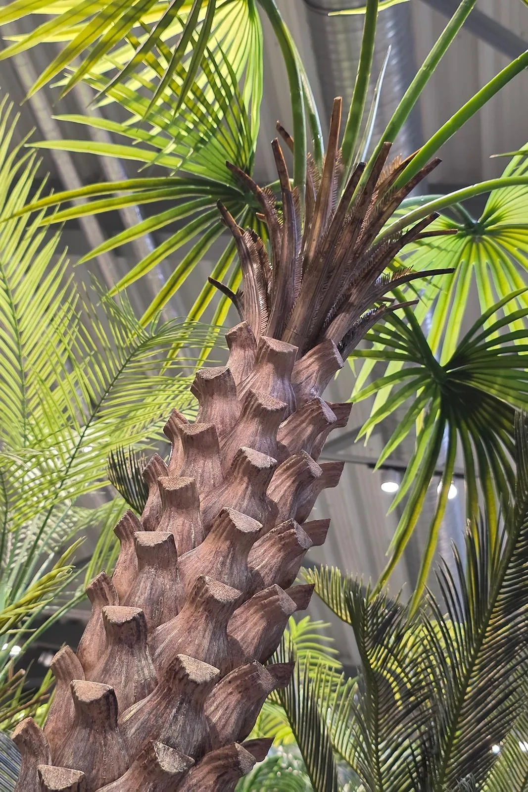 - Realistyczny pień (jak naturalny): wierne odwzorowanie tekstury i struktury pnia palmy nadaje roślinie autentyczności.