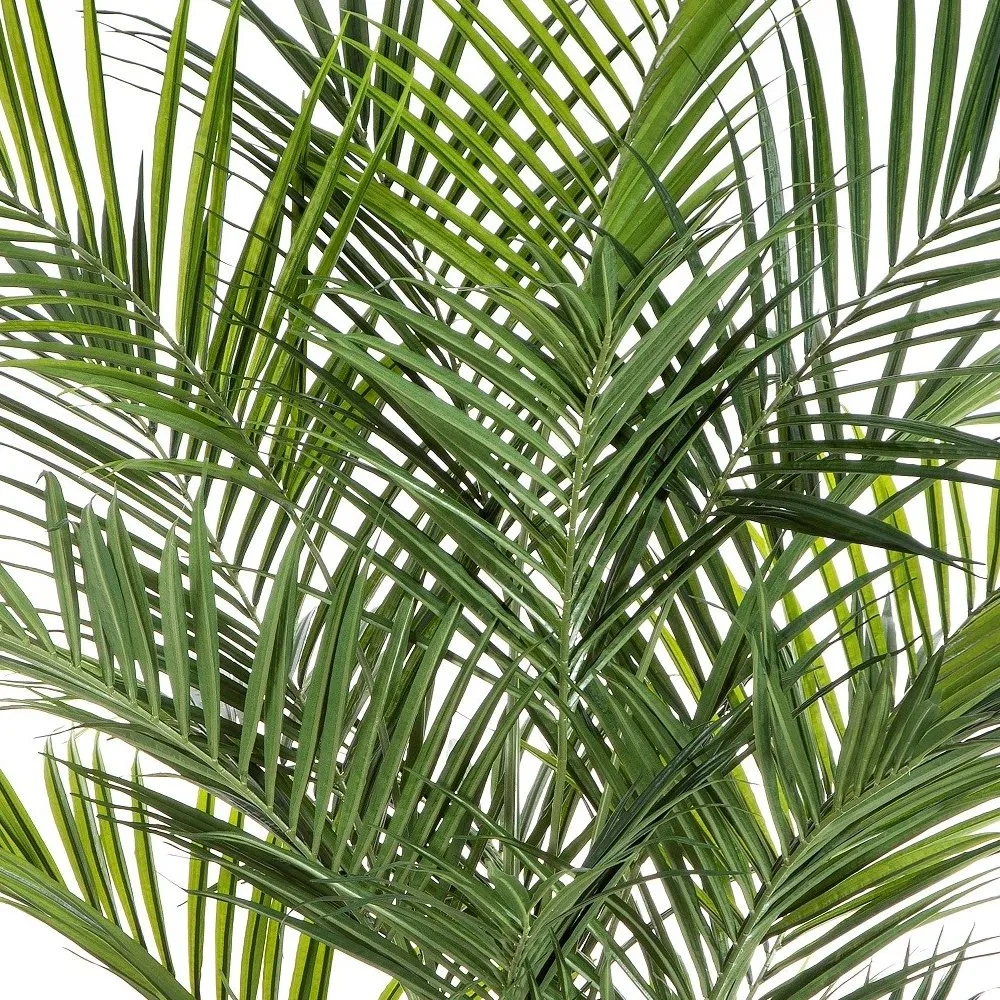 - Imitacja pnia i łodyg: wiele grubych, zielono-brązowych łodyg tworzących zwartą kępę u podstawy, realistycznie odwzorowuje naturalny pień palmy.