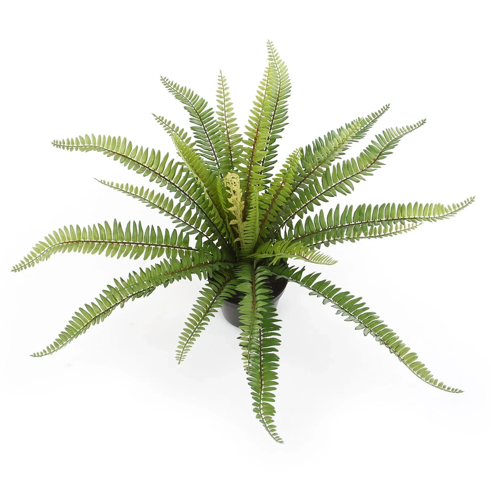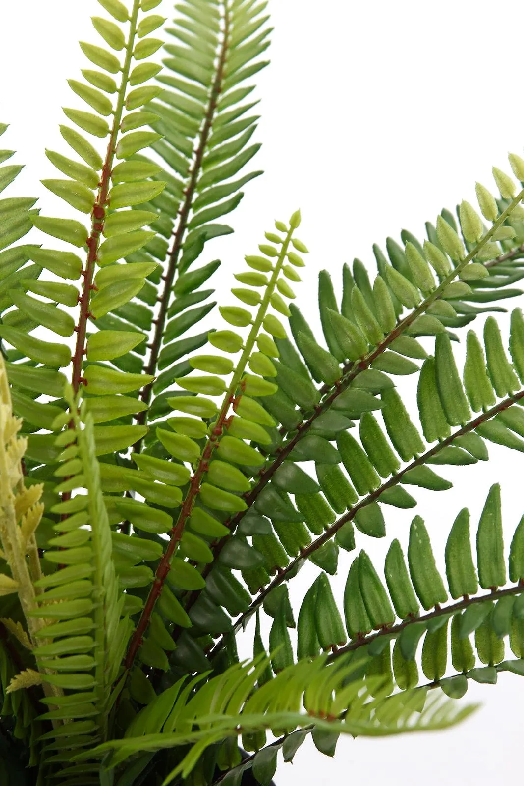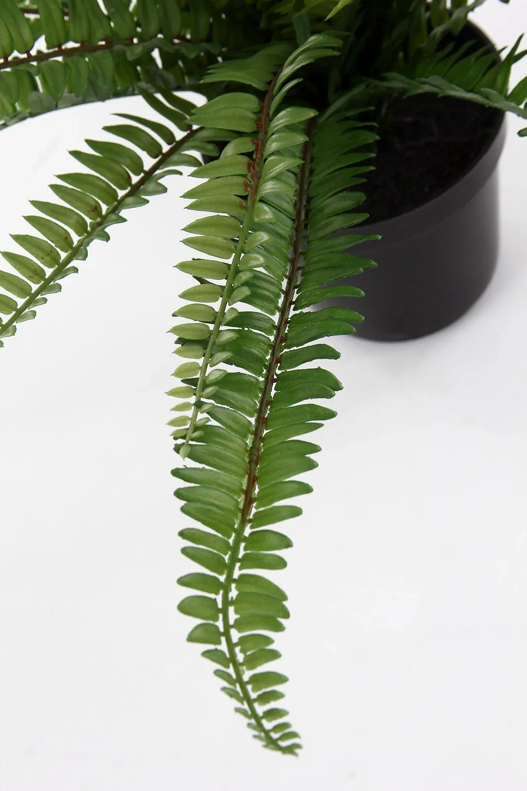 - Realistyczny wygląd: każdy liść paproci jest dobrze odwzorowany, z dbałością o naturalny kolor i fakturę. Liście mają charakterystyczną dla paproci Boston budowę pióropusza i rozkładają się na boki, tworząc bujną i gęstą formę.
