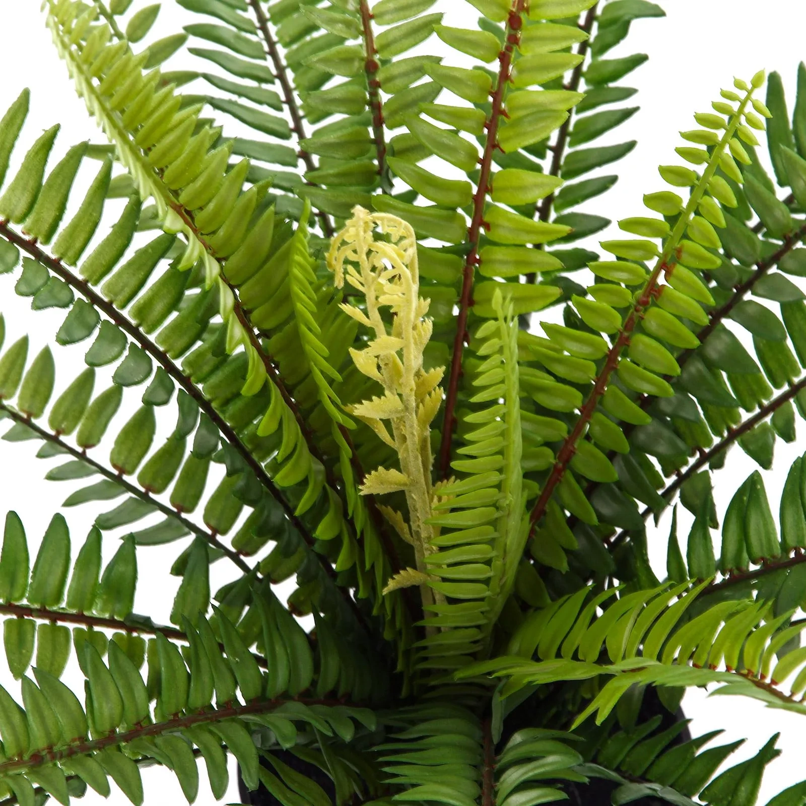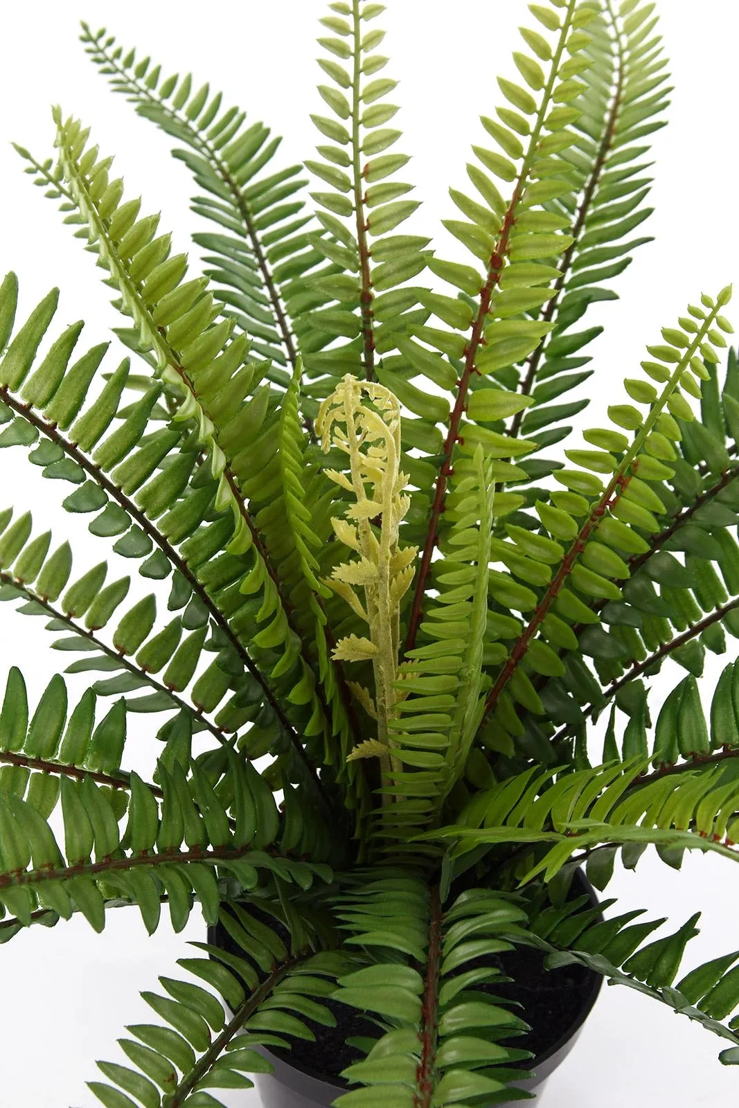 - Nowe pędy: dodatkowym elementem, który podkreśla realizm, jest imitacja młodego, rozwijającego się liścia w środku rośliny. Ten subtelny szczegół sprawia, że paproć wygląda jak żywa i dynamicznie rosnąca.