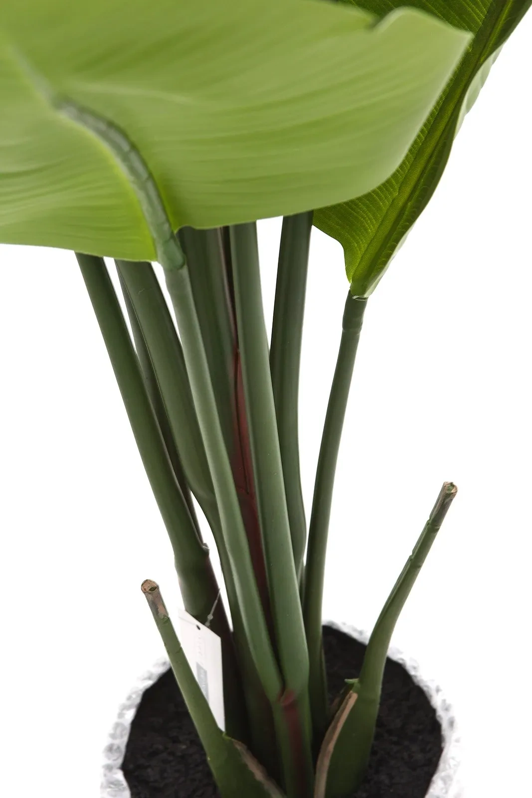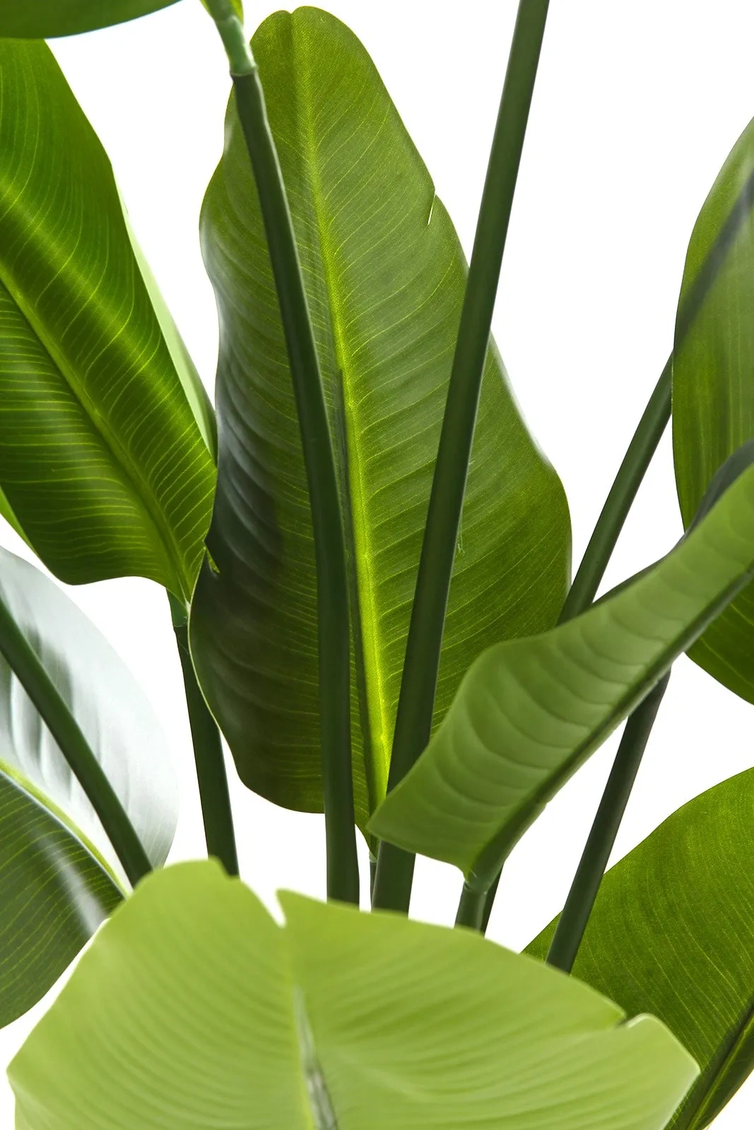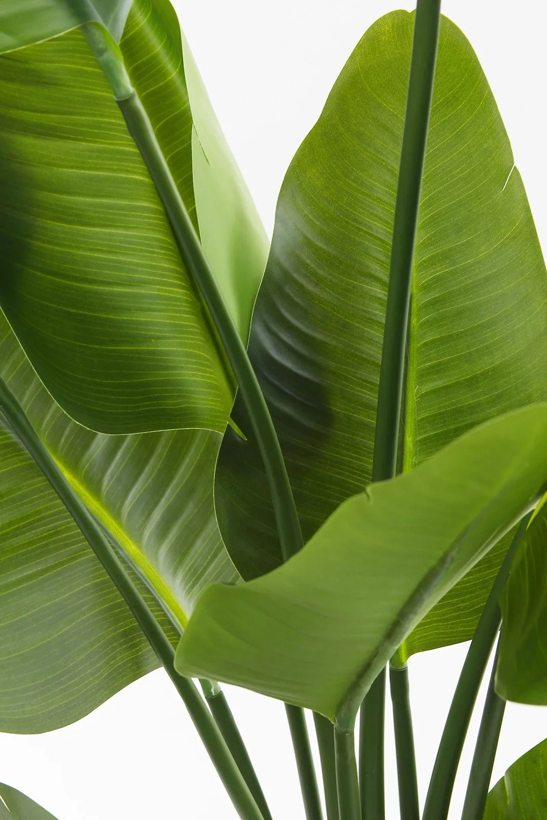 - Spektakularny design: ta sztuczna roślina to wierna replika Strelicji Nicolai, zwanej również "białym rajskim ptakiem". Charakteryzuje się dużymi, szerokimi liśćmi o intensywnie zielonym kolorze i wyraźnym unerwieniu. Ich realistyczne ułożenie i lekki połysk sprawiają, że roślina wygląda jak żywa.