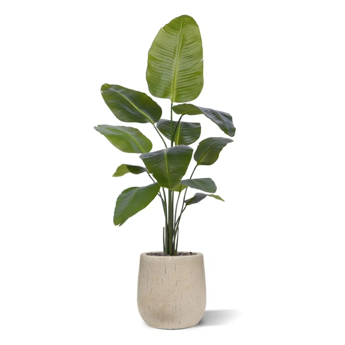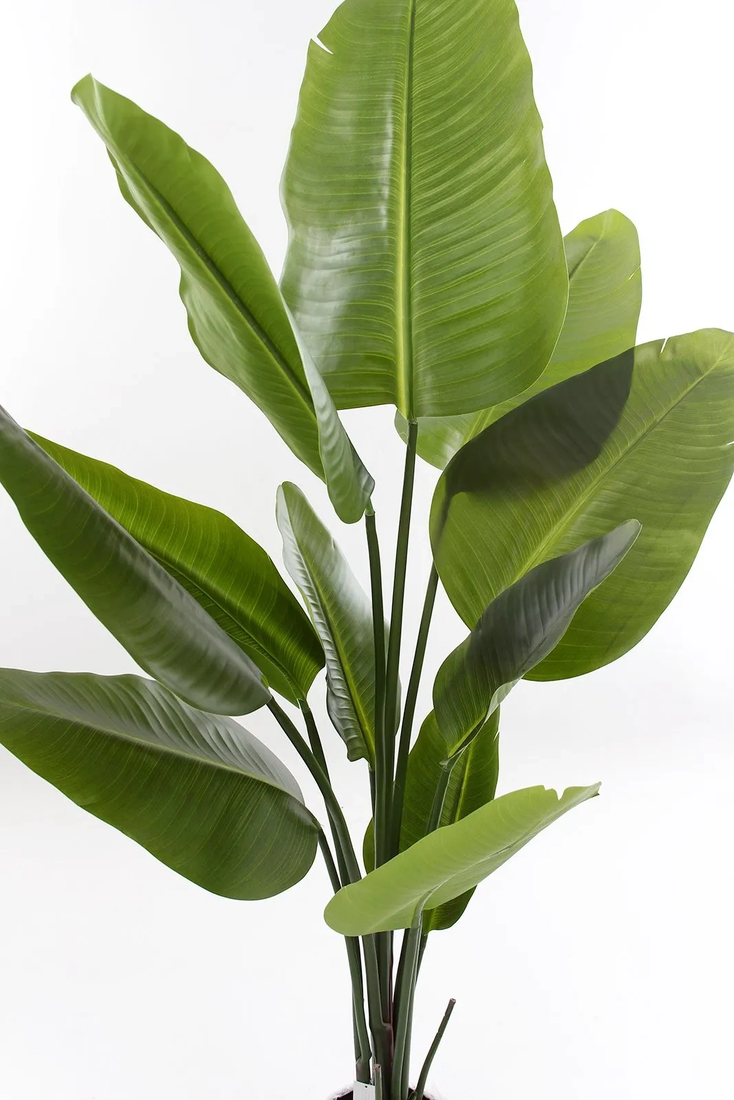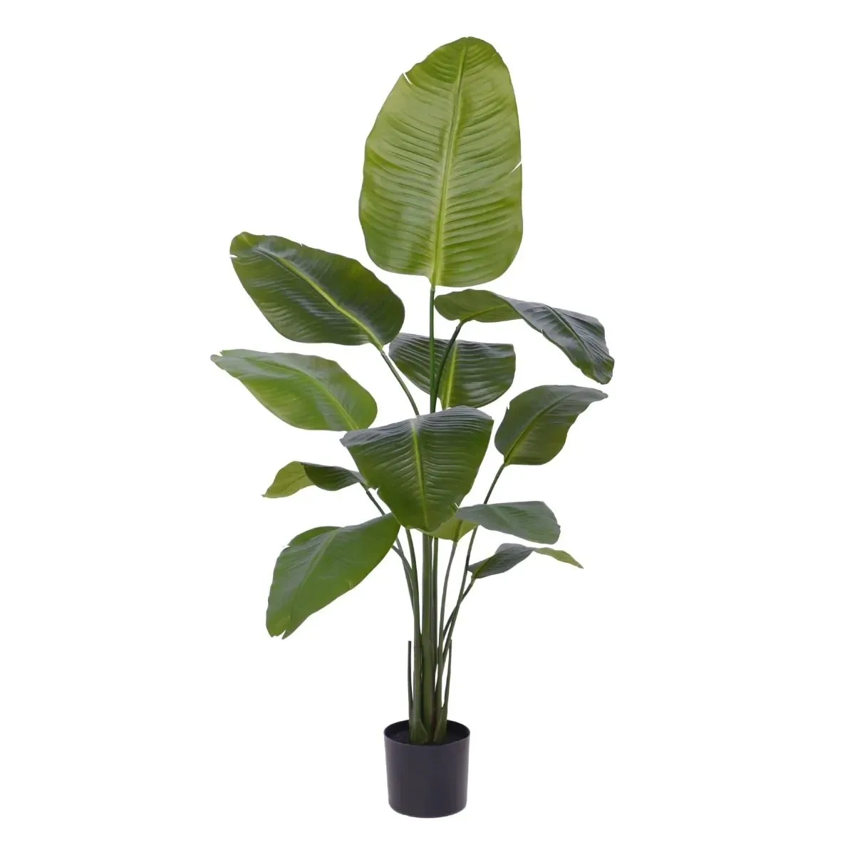 - Spektakularny design: ta sztuczna roślina to wierna replika Strelicji Nicolai, zwanej również "białym rajskim ptakiem". Charakteryzuje się dużymi, szerokimi liśćmi o intensywnie zielonym kolorze i wyraźnym unerwieniu. Ich realistyczne ułożenie i lekki połysk sprawiają, że roślina wygląda jak żywa.