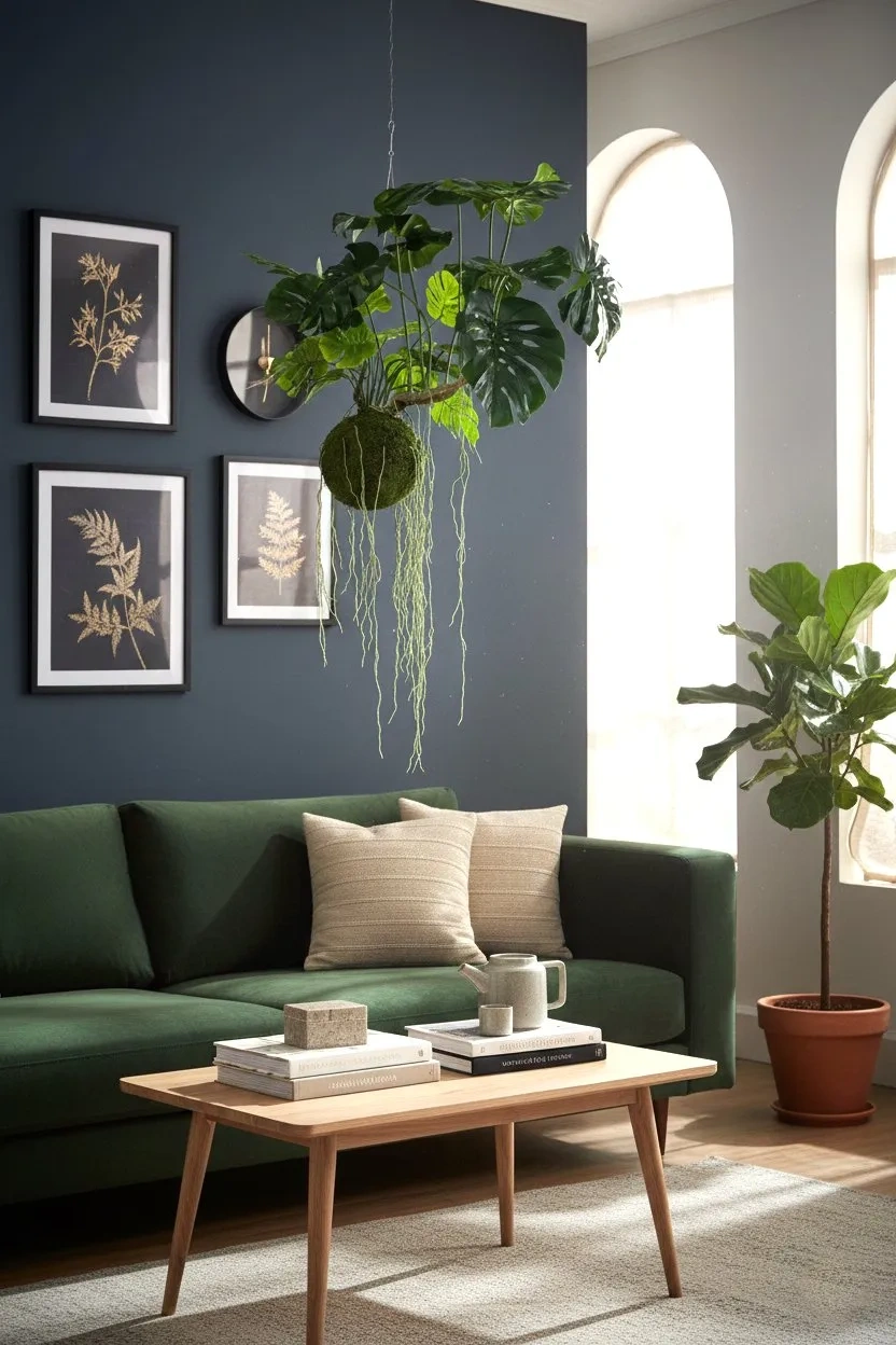 • Styl skandynawski/japandi: zawieszona na tle jasnej ściany, w pobliżu minimalistycznych mebli z naturalnego drewna.