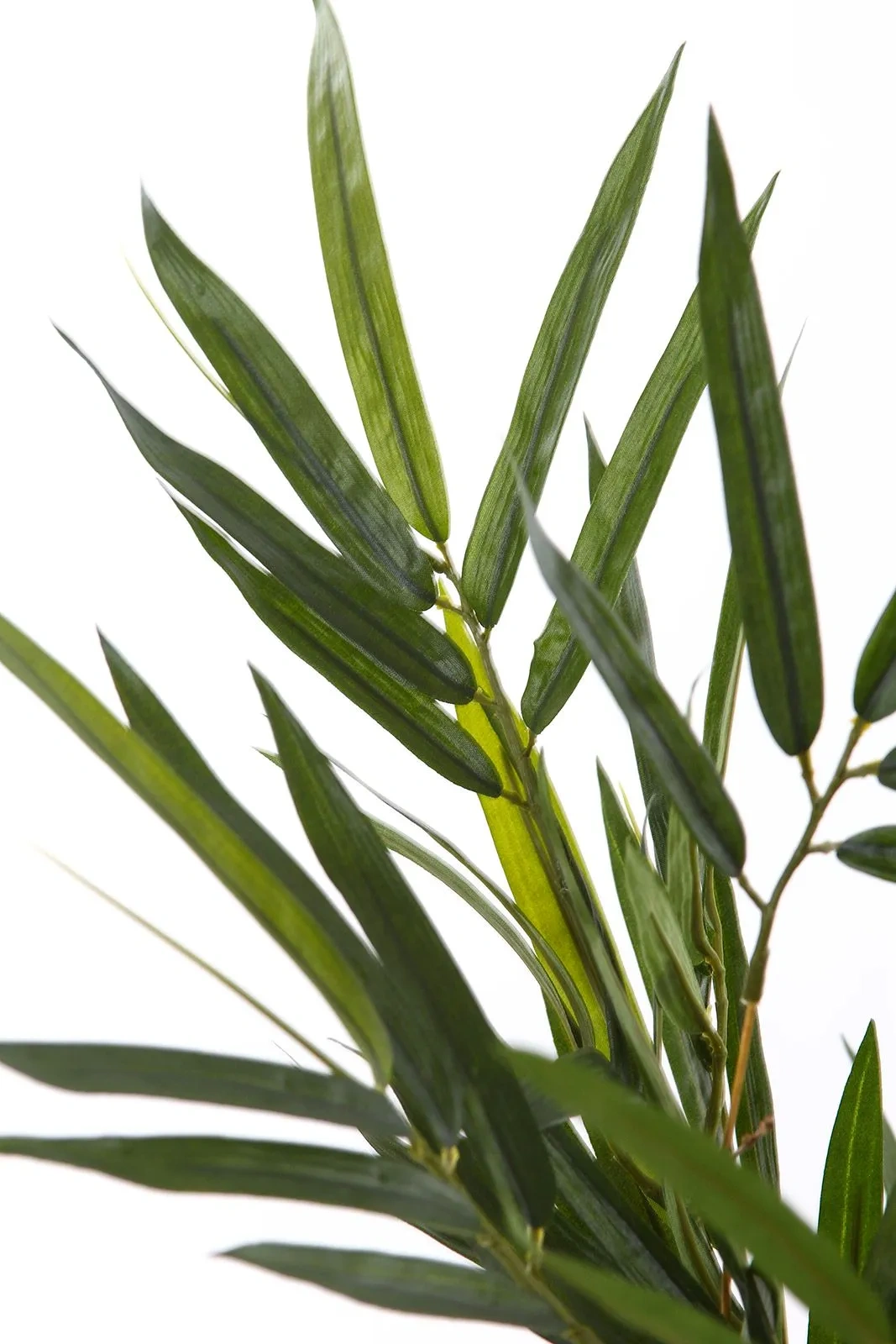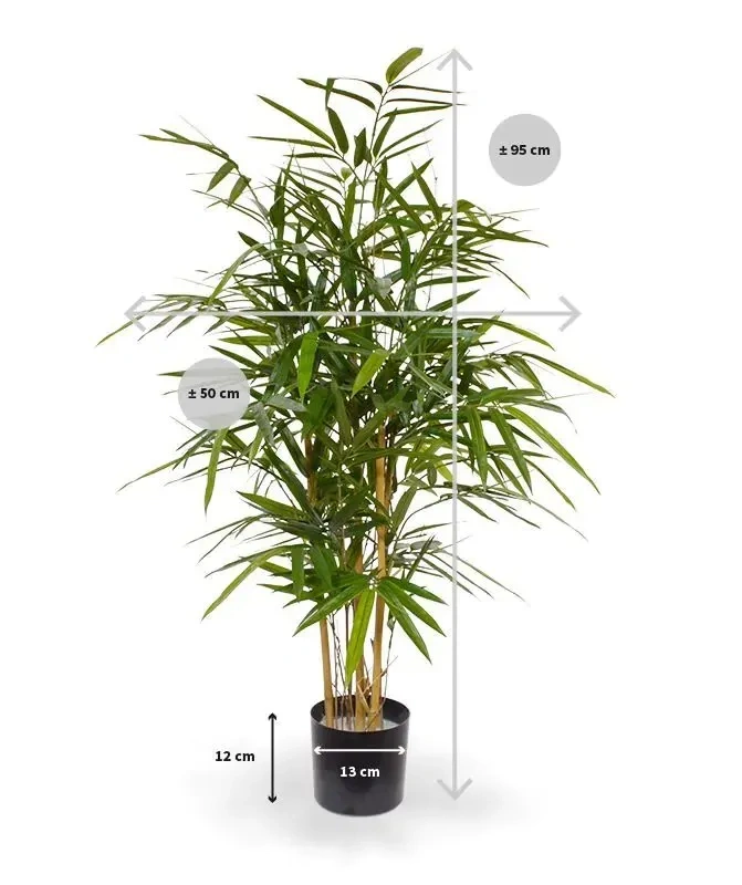 Sztuczny Bambus Royal o wysokości 95 cm to doskonała replika, która łączy w sobie azjatycki minimalizm z najwyższą jakością wykonania. Dzięki zastosowaniu naturalnych łodyg bambusa, roślina jest niemal nie do odróżnienia od żywego pierwowzoru, stanowiąc trwałą i bezproblemową dekorację.