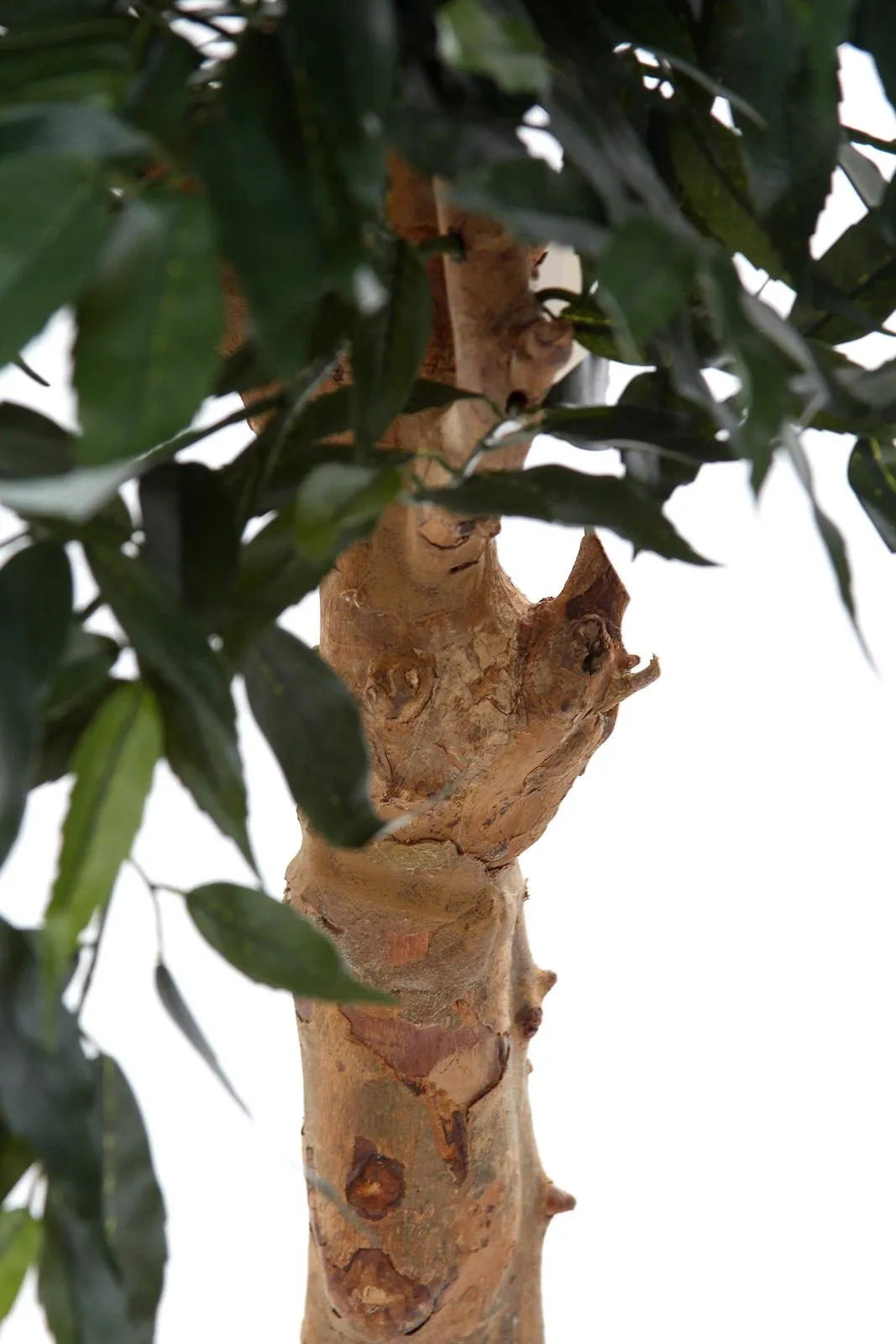 - Naturalny drewniany pień: sztuczny Bonsai Shirakashi wyróżnia się autentycznym, naturalnym pniem, który doskonale imituje prawdziwe drzewko, dodając mu realistycznego uroku i tekstury. Widoczne na zdjęciach detale pnia podkreślają jego naturalny charakter.