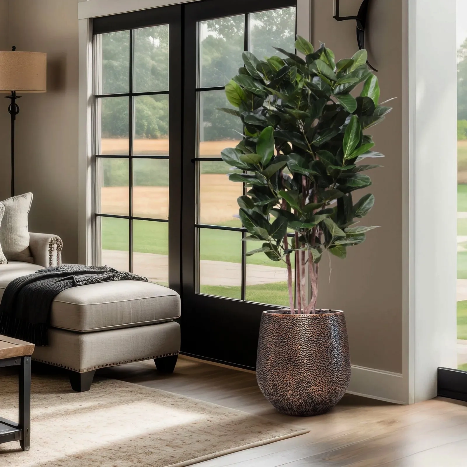 Sztuczny Fikus Audrey został zaprojektowany z dbałością o każdy detal, co sprawia, że jest niemal nie do odróżnienia od swojego żywego odpowiednika.
