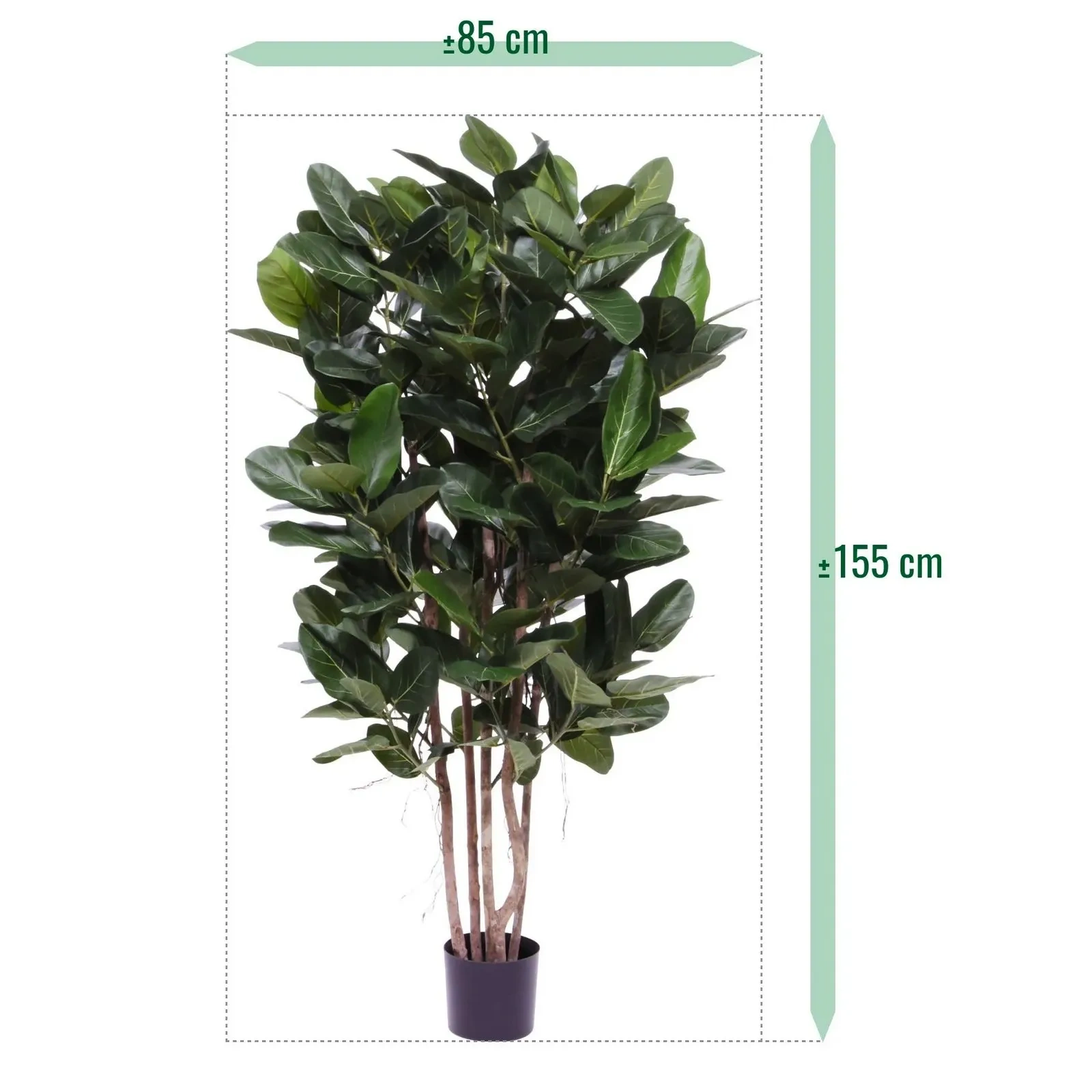 Odkryj piękno natury bez konieczności pielęgnacji dzięki sztucznemu Fikusowi Audrey na drewnianych pniach 155 cm Deluxe. Ten elegancki, sztuczny fikus to idealne rozwiązanie, aby wprowadzić do swojego wnętrza odrobinę zieleni, nadając mu luksusowy i świeży wygląd. Dzięki imponującej wysokości 155 cm i starannemu wykonaniu, roślina prezentuje się niezwykle realistycznie. Jest to doskonała propozycja dla każdego, kto marzy o stylowej aranżacji, ale nie ma czasu na regularną pielęgnację żywych roślin.