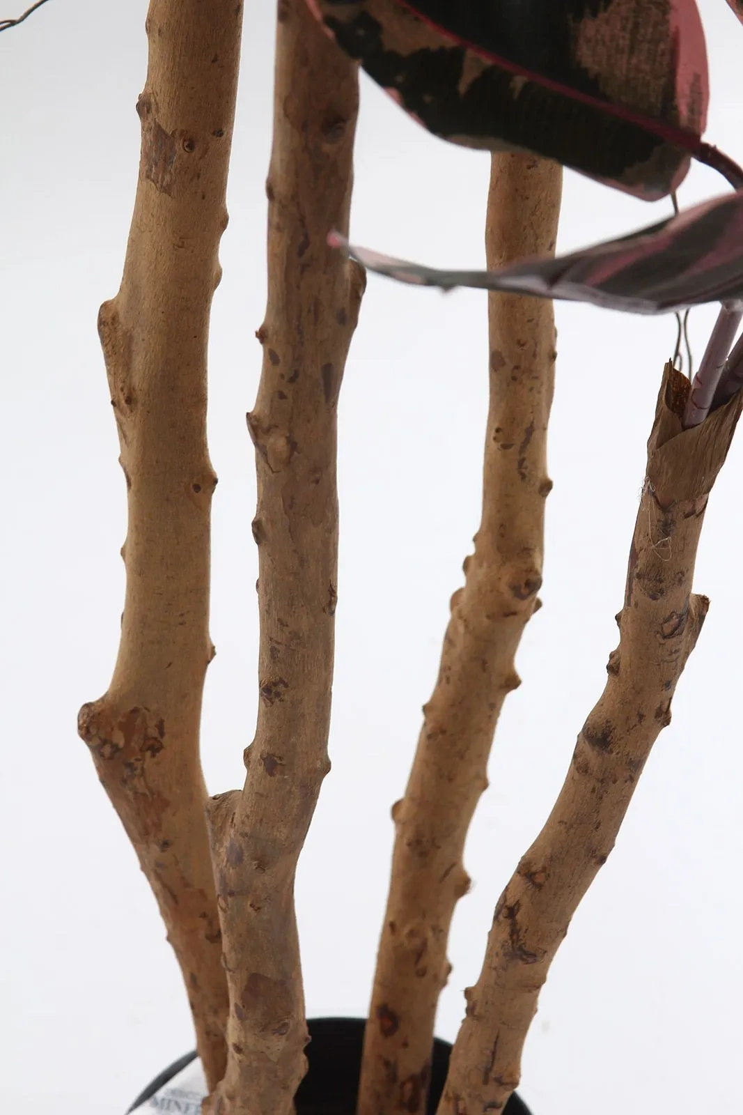 Naturalny, drewniany pień. Największym atutem tego fikusa to drewniany pień. Nie jest to plastikowy odlew. Pień posiada autentyczną teksturę kory, naturalne nierówności, sęki oraz realistycznie wyglądające, cienkie korzenie powietrzne oplatające główne łodygi. Dzięki temu każda sztuka jest nieco inna i wygląda jak żywy okaz wyhodowany w naturze.