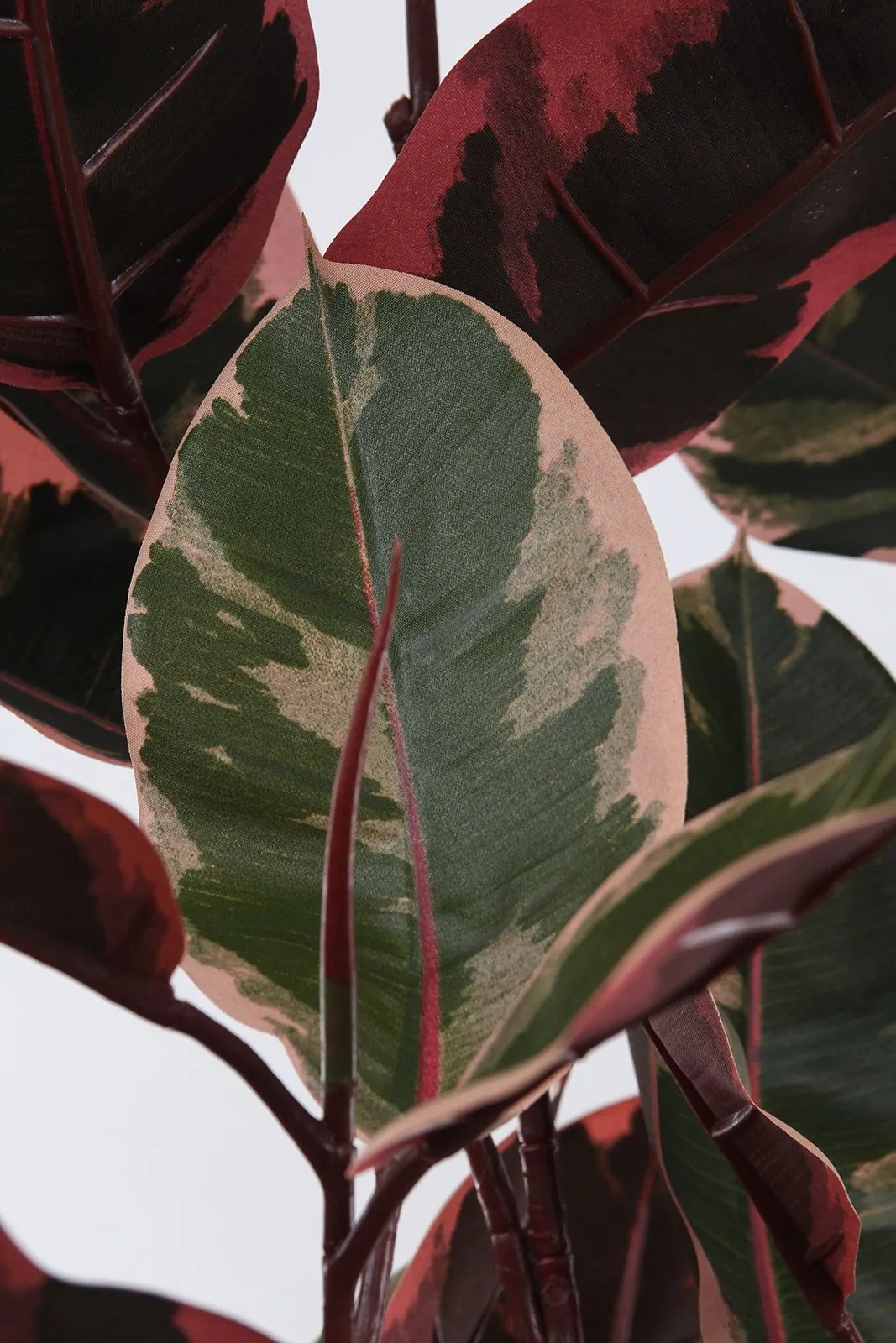 Sztuczny Fikus Elastica Ruby Red o wysokości 200 cm to wyrazista dekoracja, która odmieni charakter pomieszczenia:
