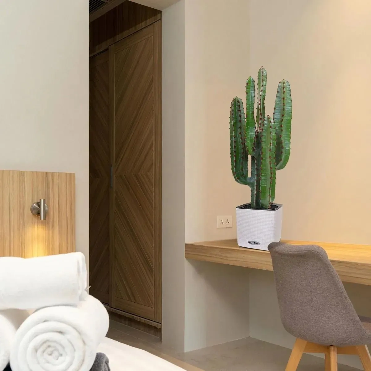 - łazienkowy akcent: dzięki odporności na wilgoć, sztuczny kaktus może zdobić łazienkę bez okna, tworząc klimat domowego spa.