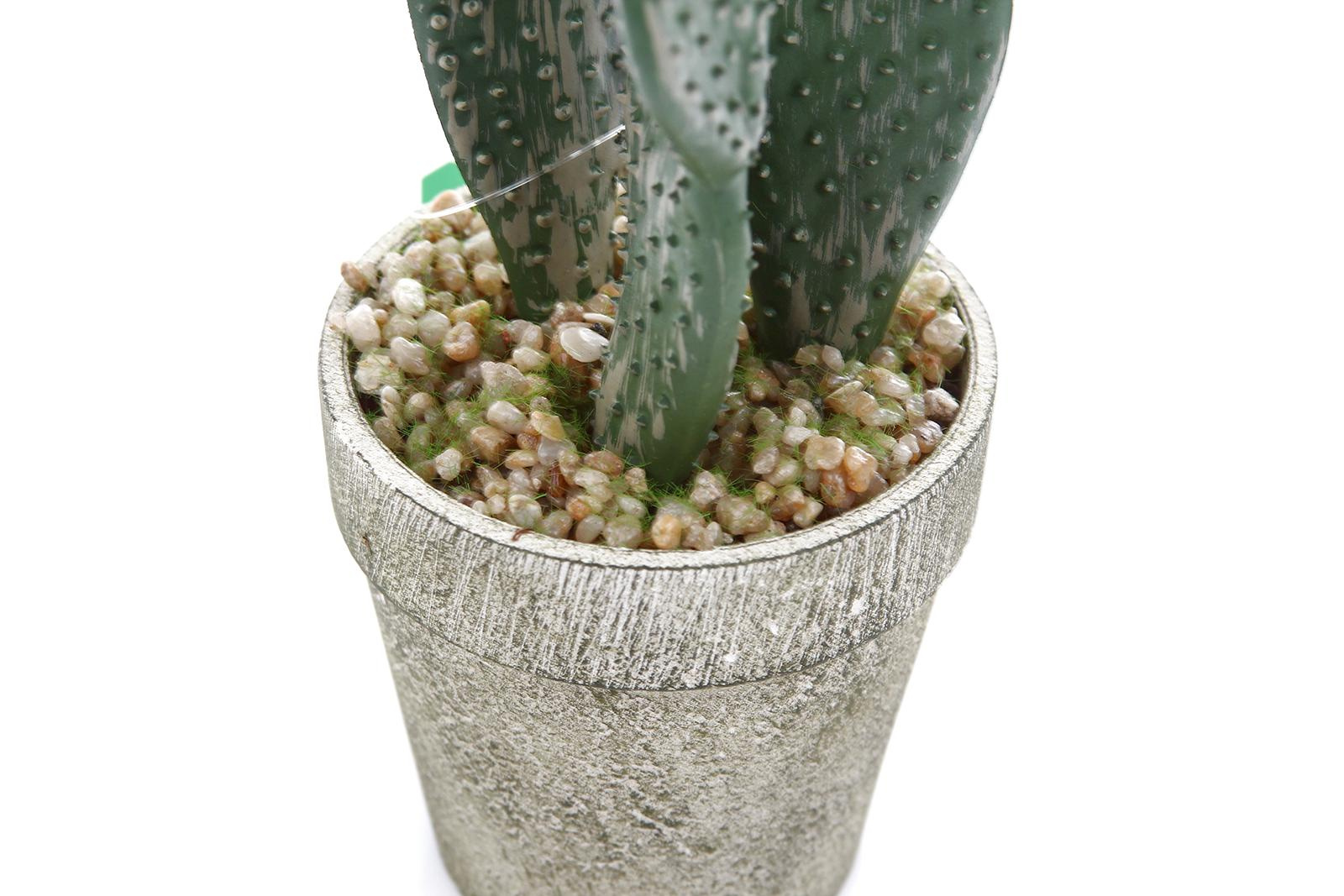- Elegancka doniczka: roślina osadzona jest w estetycznej doniczce o postarzanym, piaskowym wykończeniu, która doskonale komponuje się z zielenią kaktusa. Drobne, jasne kamyczki na powierzchni imitują naturalne podłoże, dodając całości uroku.