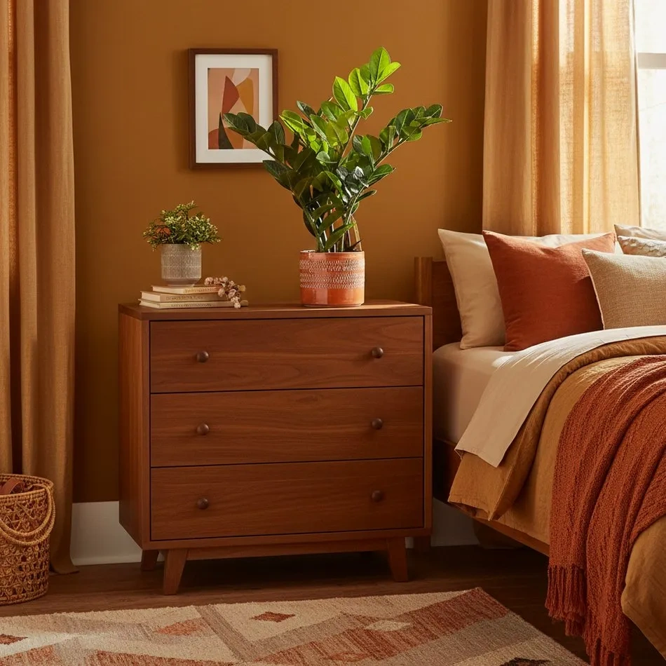 Sztuczny Zamiokulkas 55 cm na komodzie w sypialni