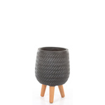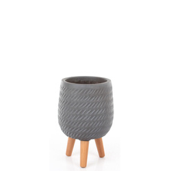 Ostatnie sztukiCORDA BOWL 24/23 płaska doniczka szara na drewnianych nóżkach