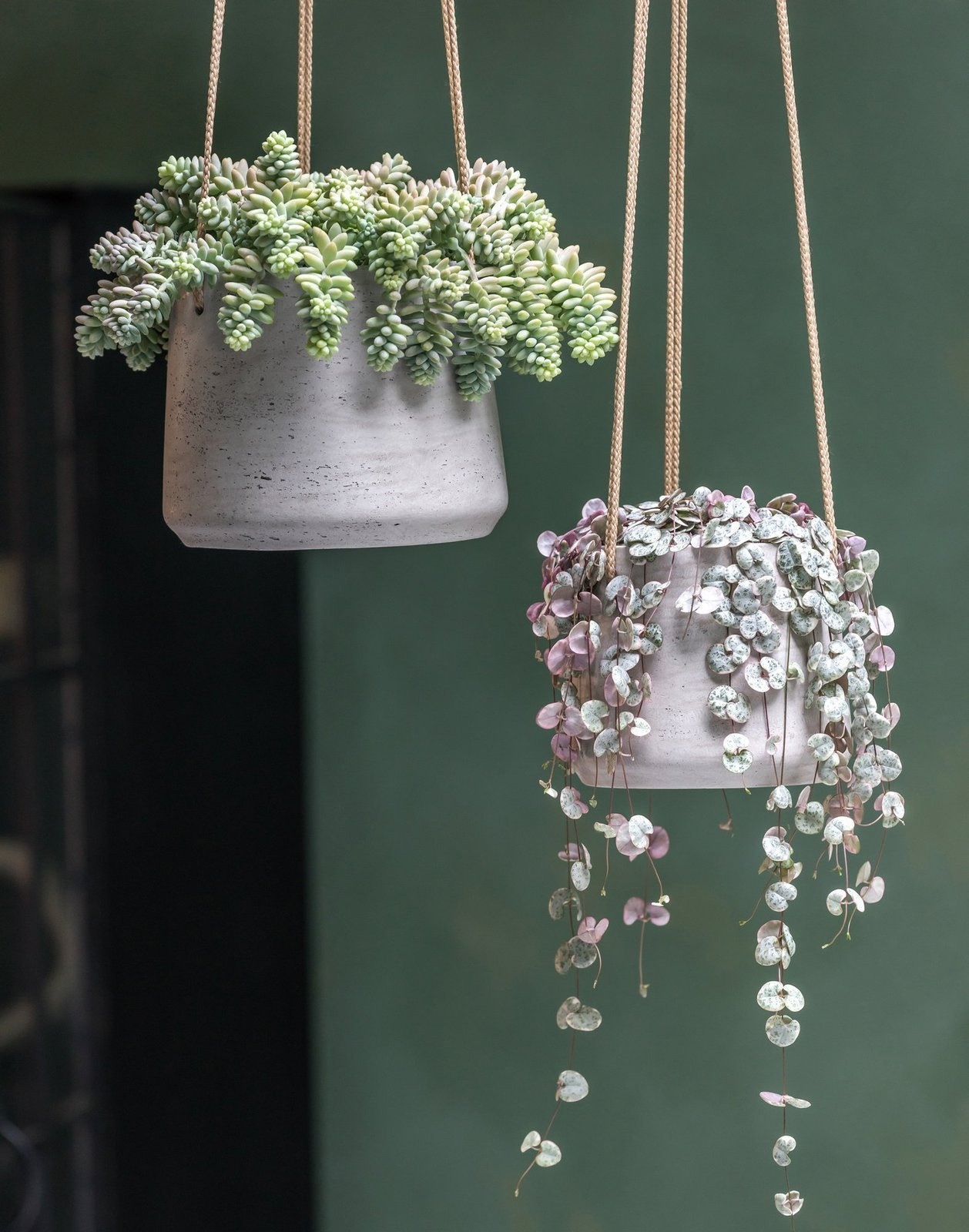 Naturalna wisząca osłonka Patt wykonana jest ze zmielonego kamienia, piasku i cementu wzmocnionego włóknem szklanym. Osłonka wyróżnia się nie tylko naturalnym wyglądem ale również niecodziennym kształtem i świetnie sprawdzi się w otoczeniu zarówno nowoczesnym jak i klasycznym. W doniczce pięknie prezentują się rośliny żywe jak i kwiaty sztuczne.