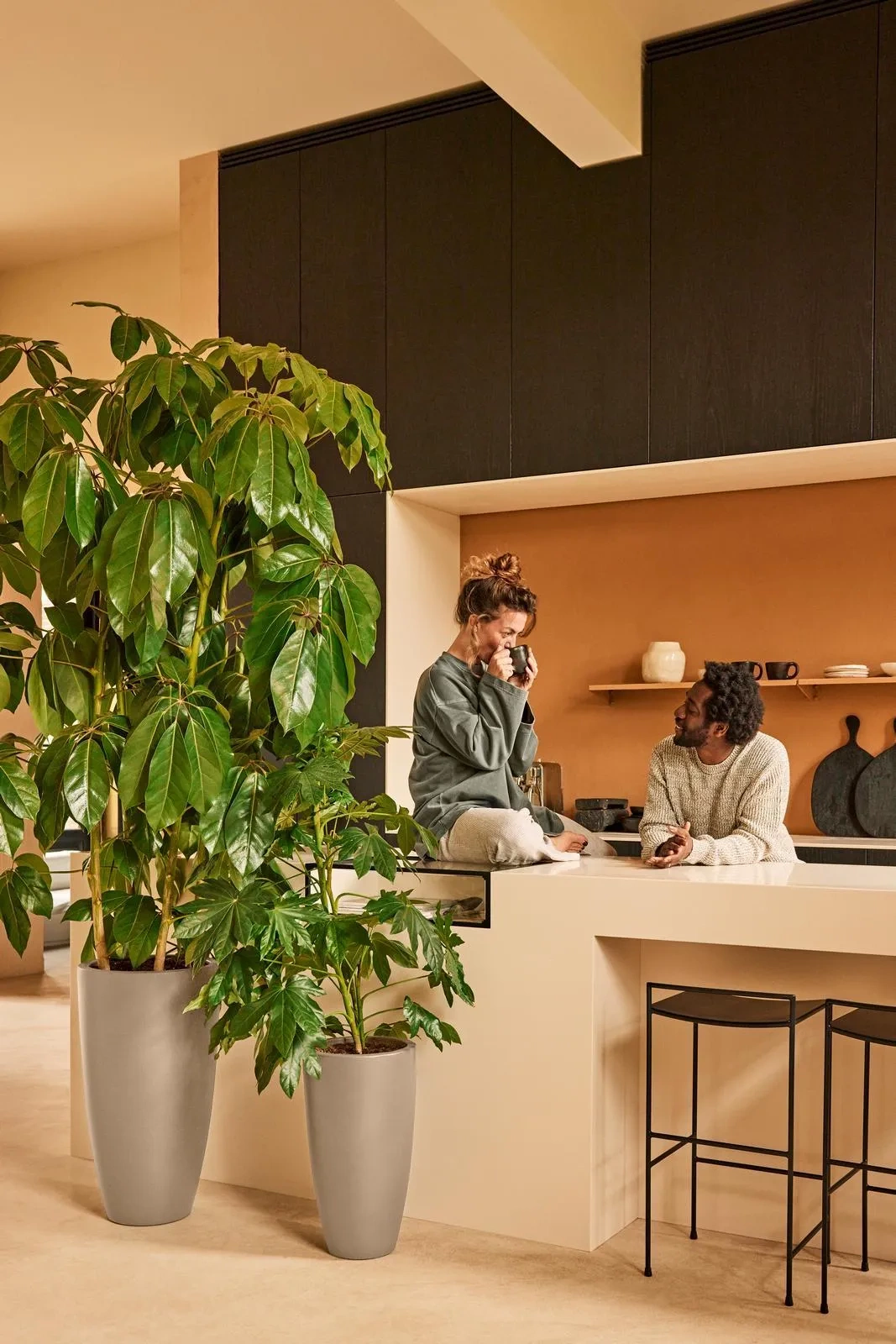 Wysoki, smukły kształt sprawiają, że donice June Roung High są uniwersalne i mogą pasować do różnych stylów aranżacji, zarówno wewnątrz, jak i na zewnątrz. Duże rośliny w takich donicach mogą stanowić efektowny element dekoracyjny.