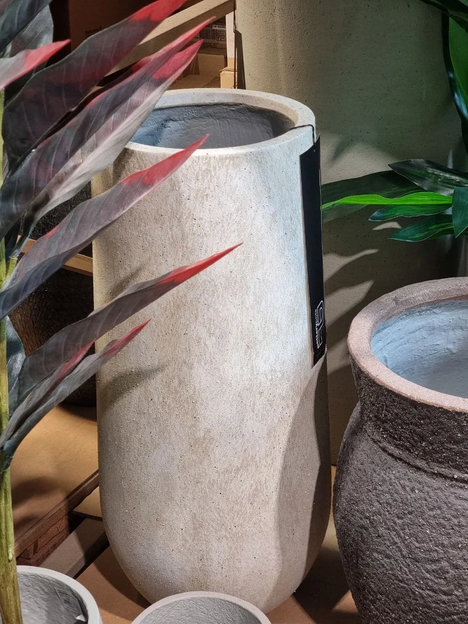 Kamienna smukła donica beżowa Nax L idealnie sprawdzi się nie tylko w Twoim salonie, ale również przed wejściem do domu, restauracji czy witrynie sklepowej.